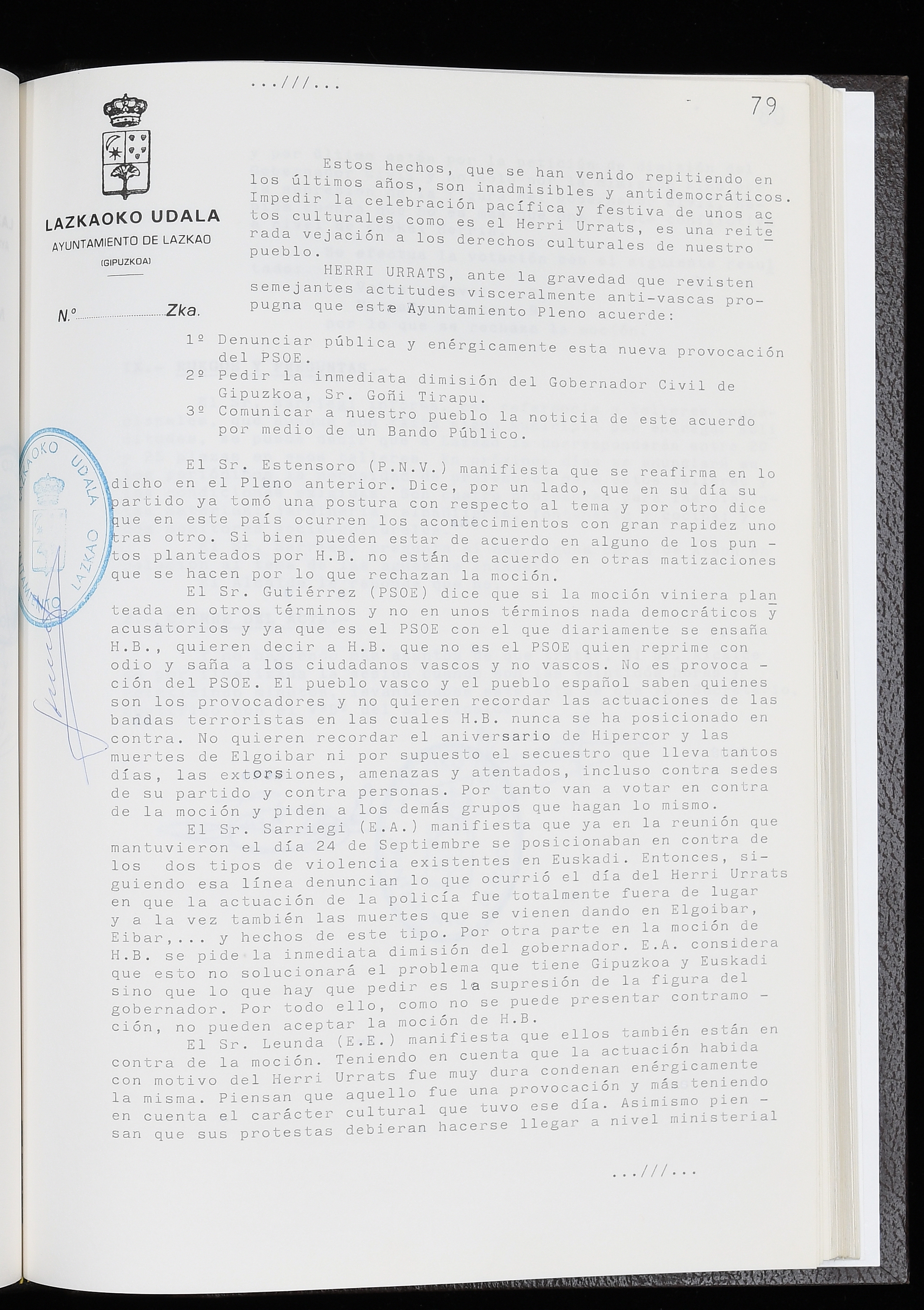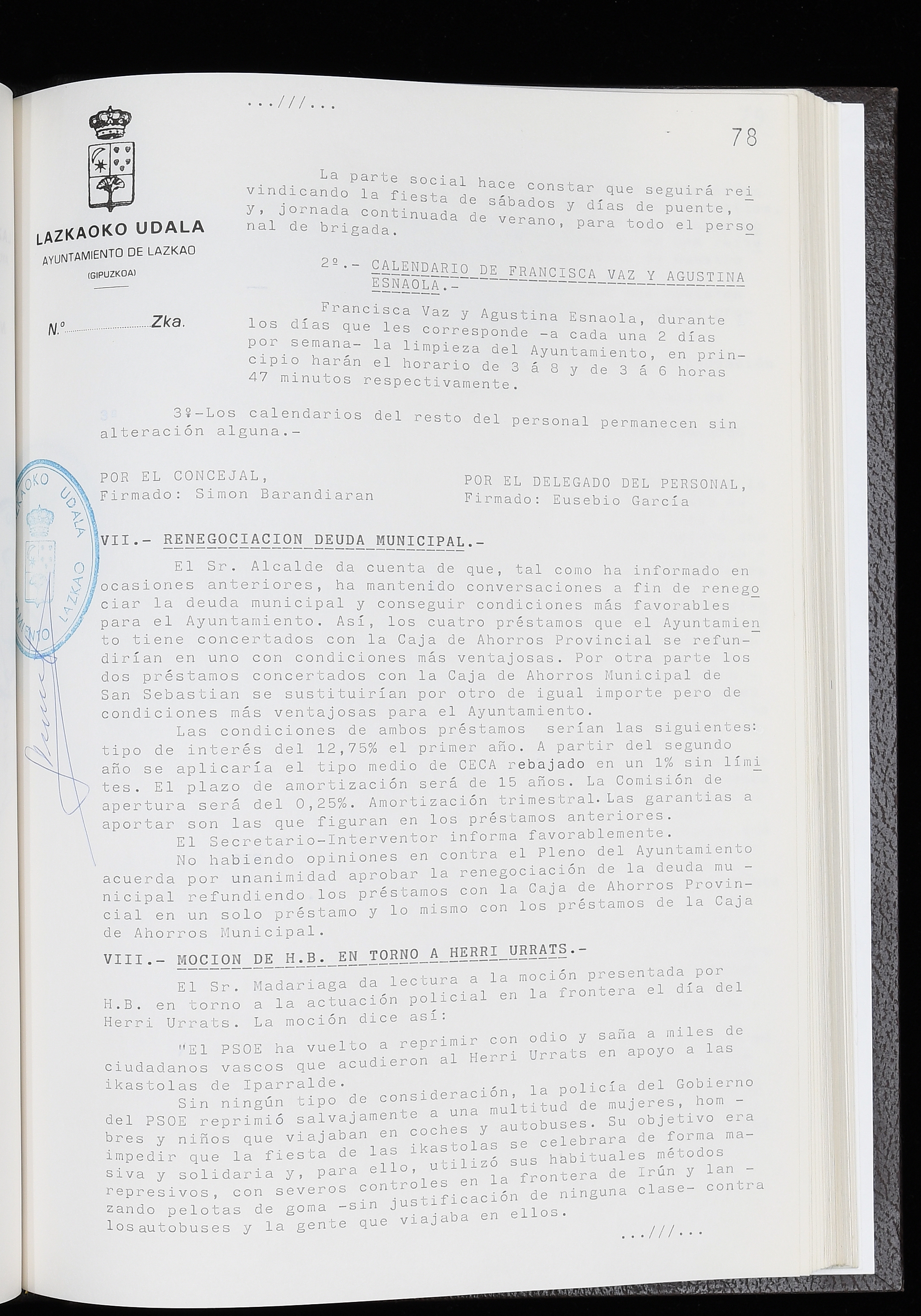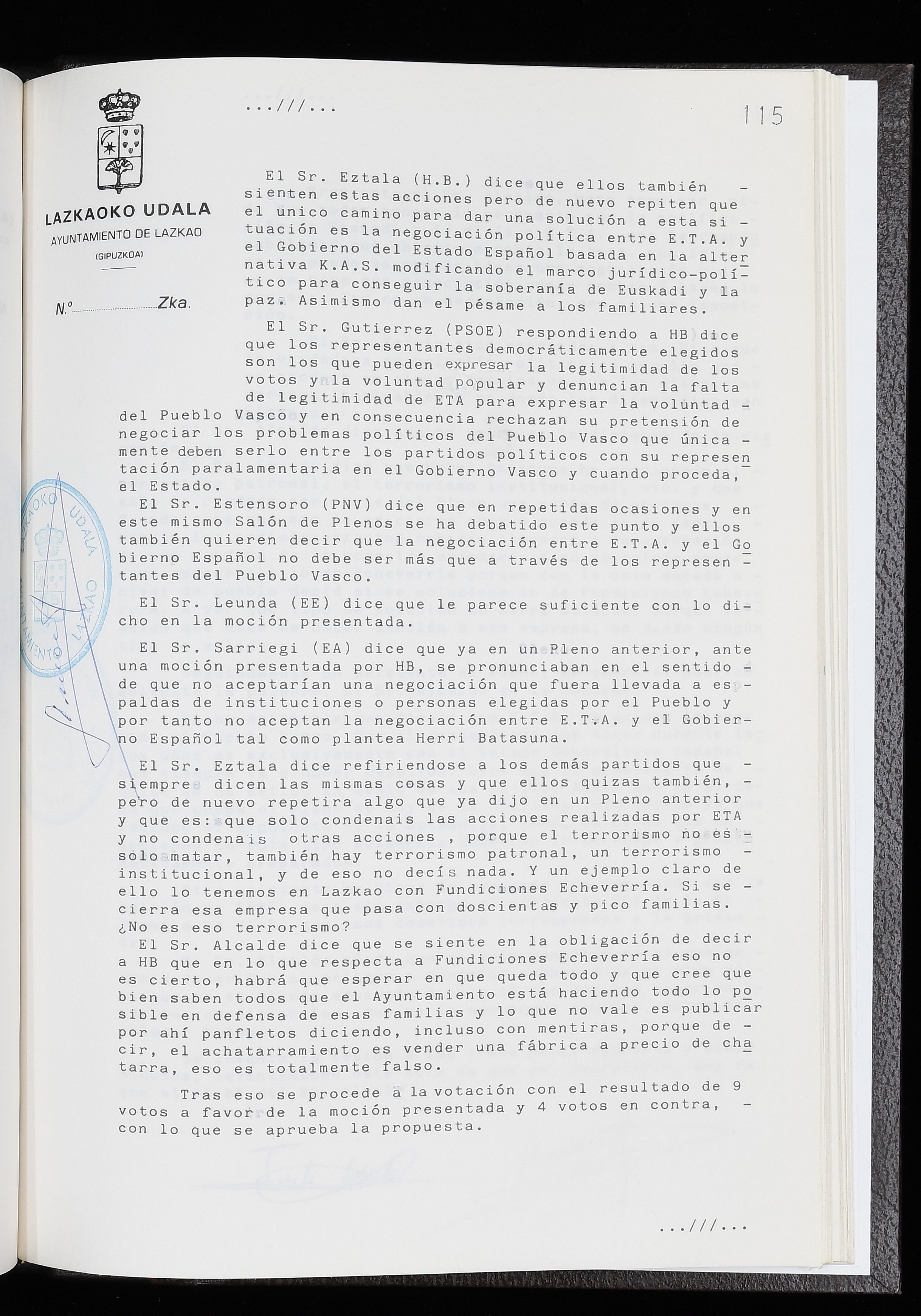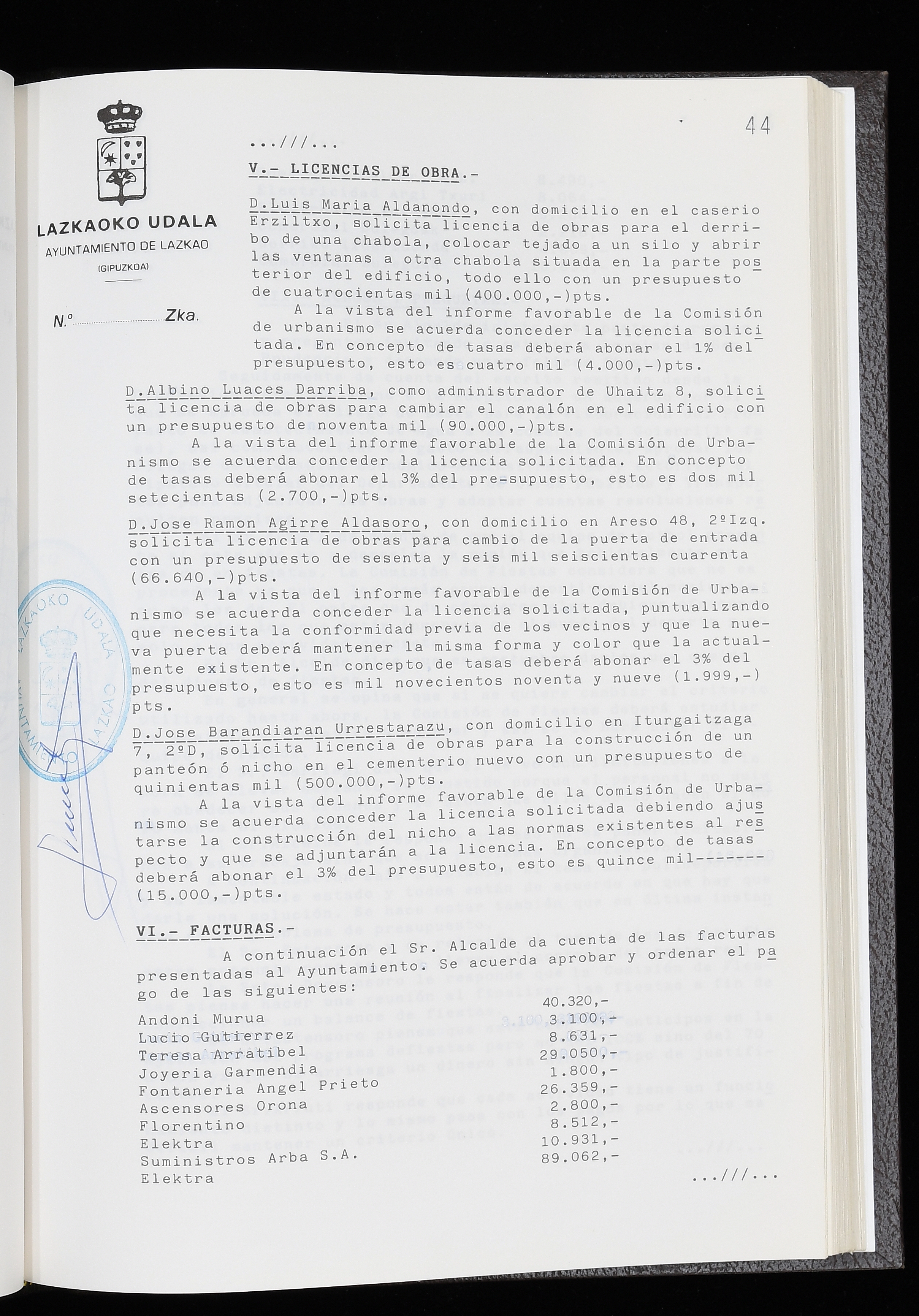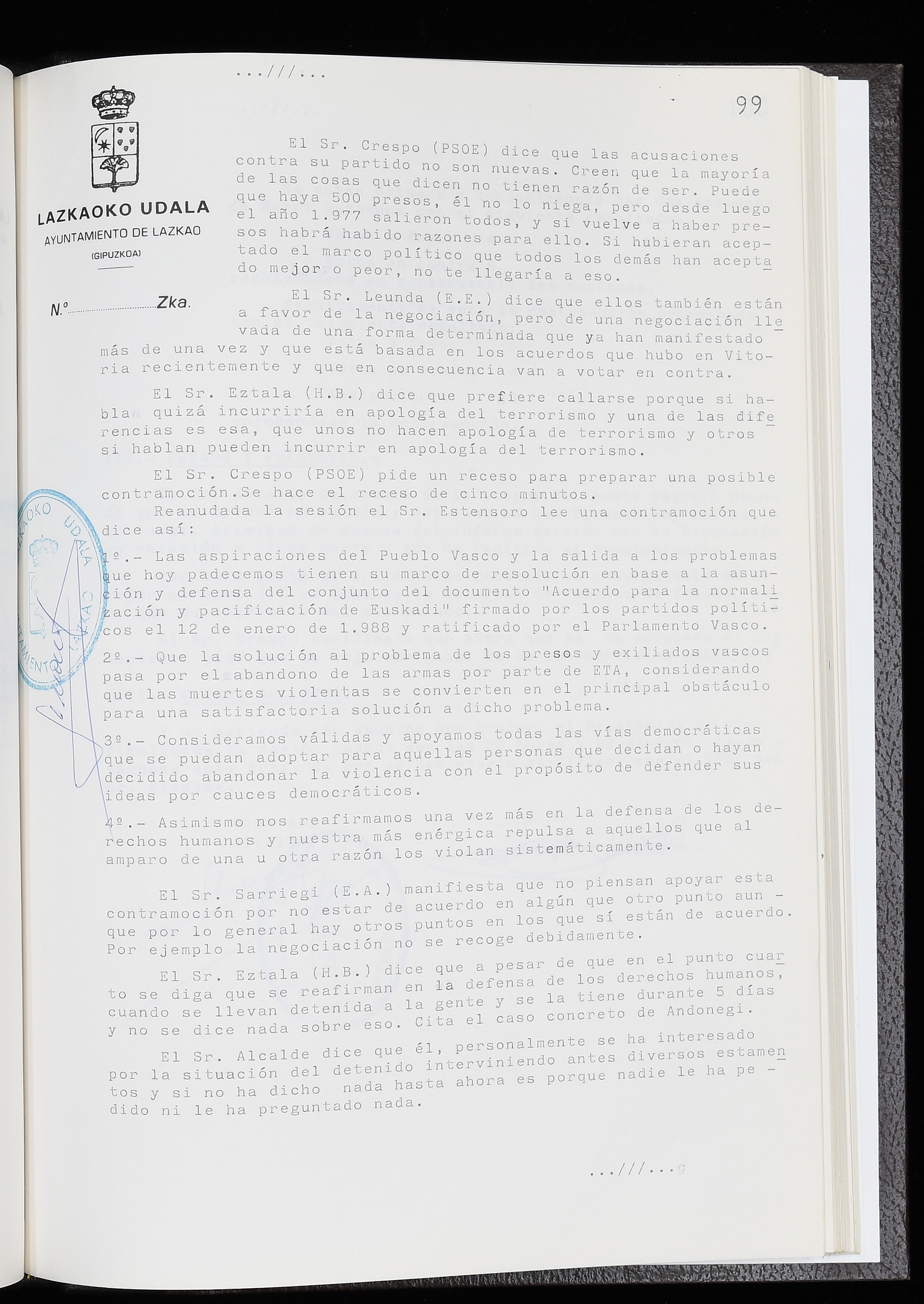 Log in to post commentsEdukiakSailkapenaFuntsaLazkaoko Udal ArtxiboaAtalakUdal AktakSailkapena1.1.4. Osoko Bilkuraren akta liburuakSailkapen berriaOsoko Bilkurako akta liburuakMultimediaIrudiakIdentifikazioaSignaturaakta liburua I-045Hasiera1988-01-28Amaiera1988-12-22AutoritateakTokiaLazkaoLog in to post commentsAkta eratu