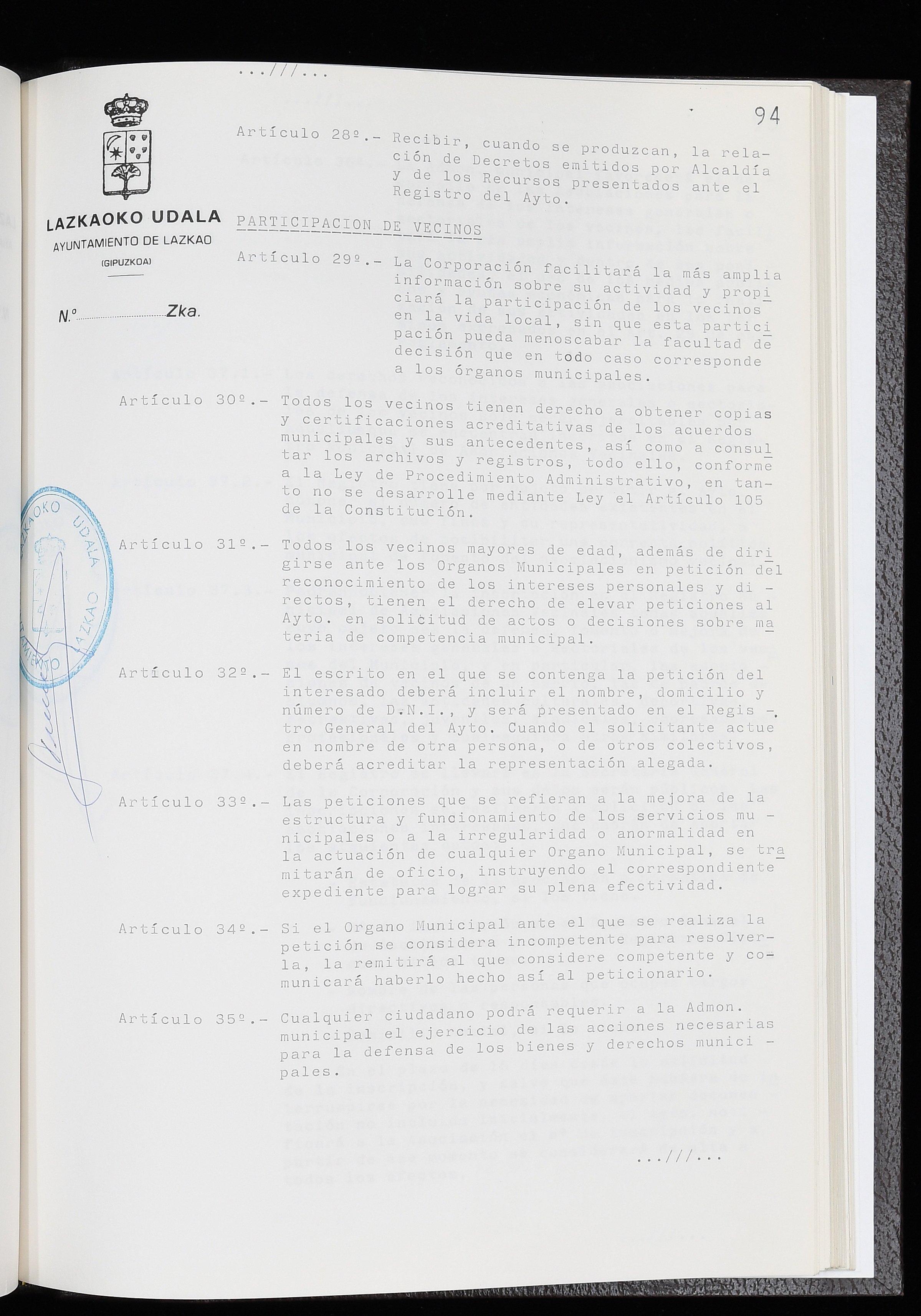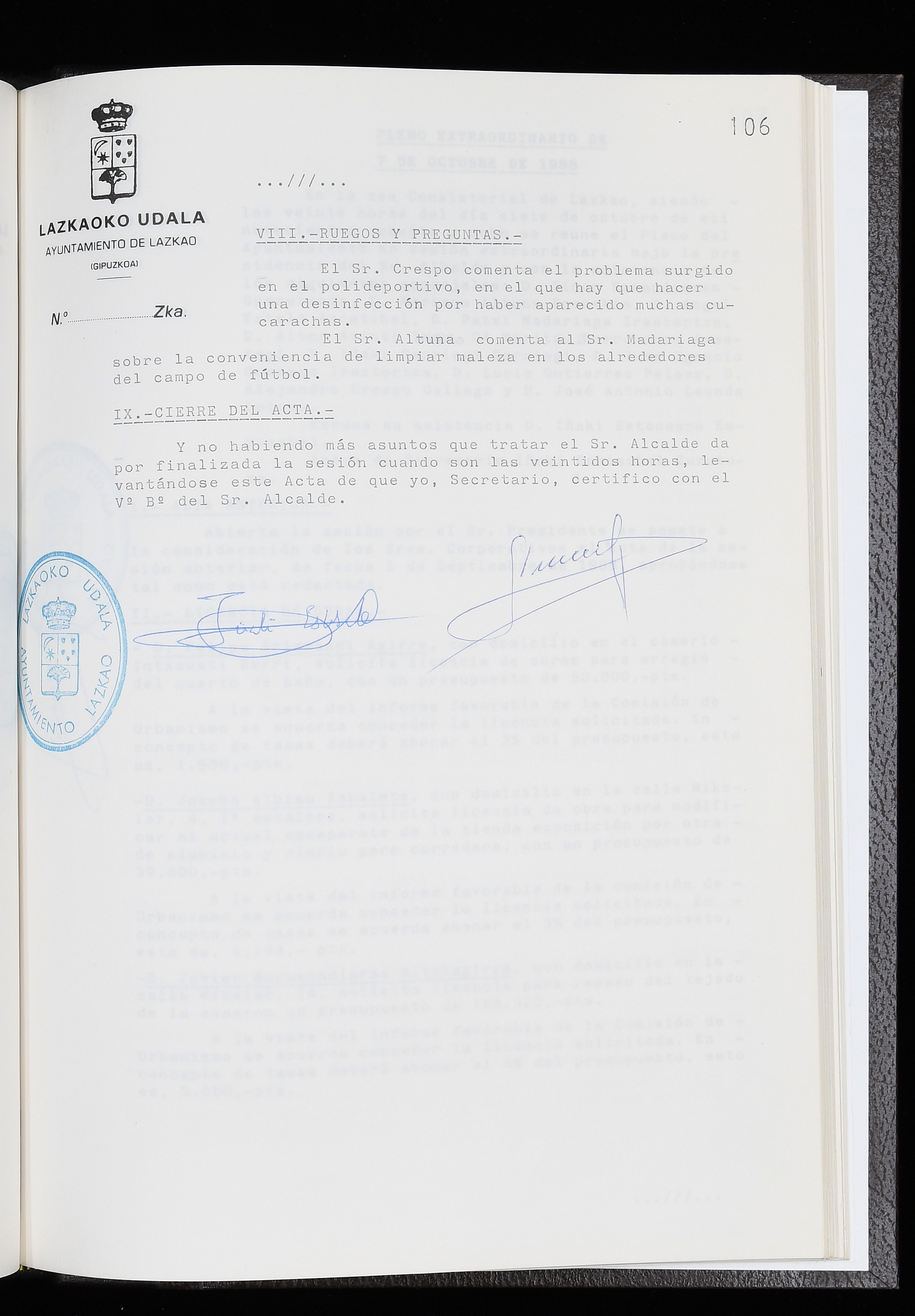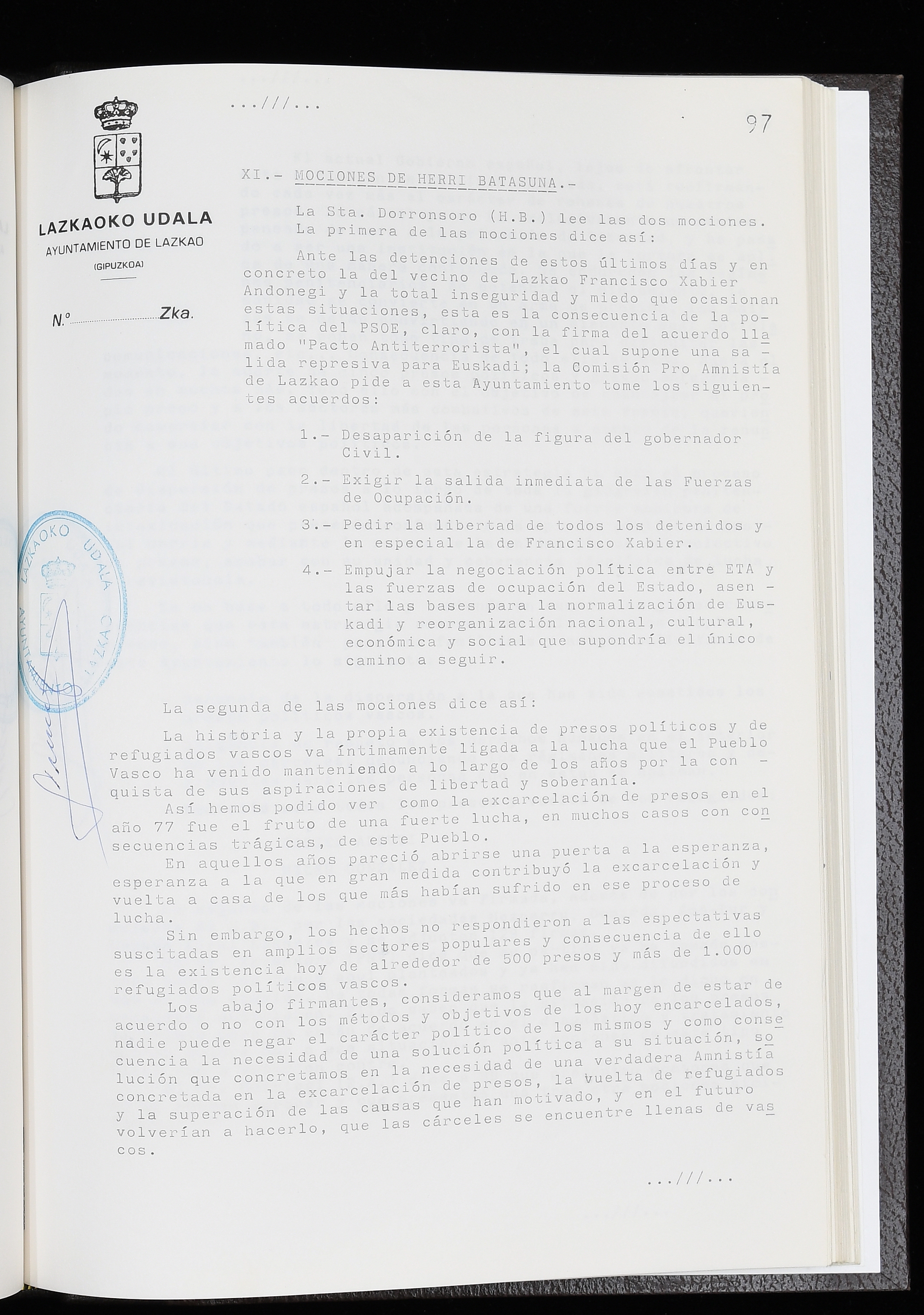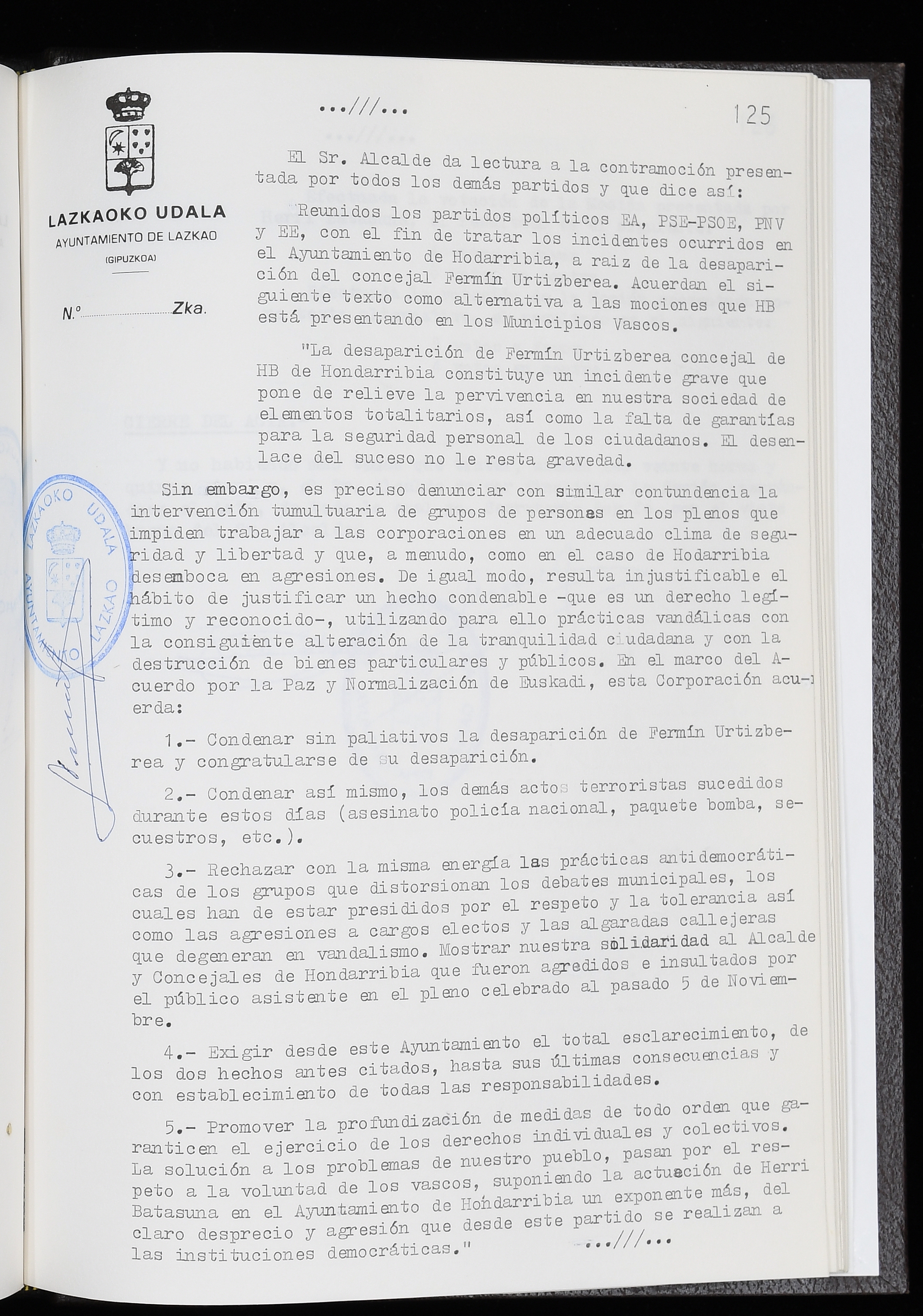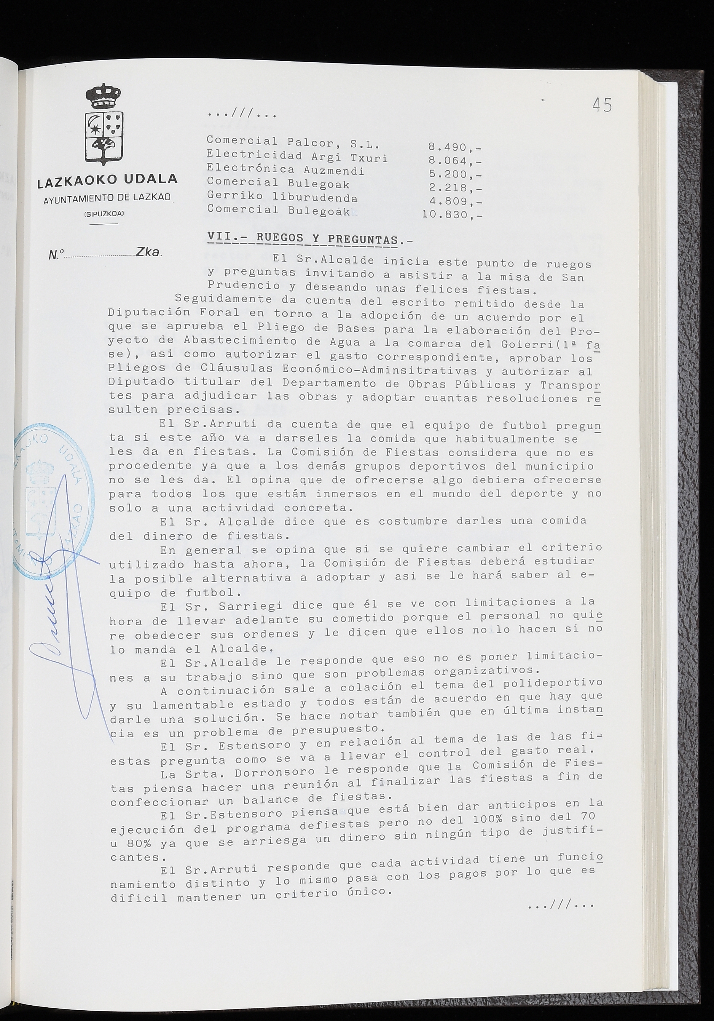 Log in to post commentsEdukiakSailkapenaFuntsaLazkaoko Udal ArtxiboaAtalakUdal AktakSailkapena1.1.4. Osoko Bilkuraren akta liburuakSailkapen berriaOsoko Bilkurako akta liburuakMultimediaIrudiakIdentifikazioaSignaturaakta liburua I-045Hasiera1988-01-28Amaiera1988-12-22AutoritateakTokiaLazkaoLog in to post commentsAkta eratu