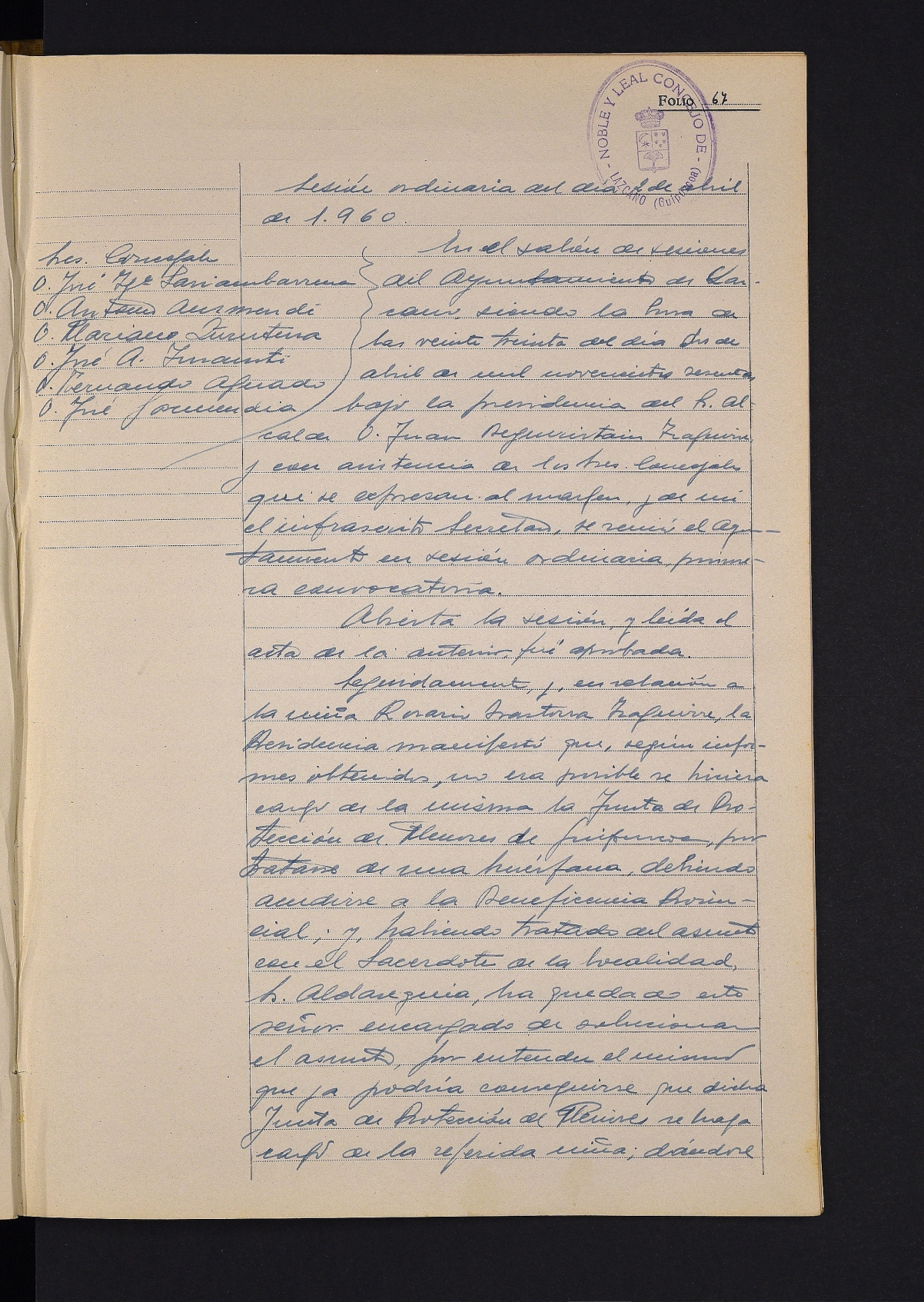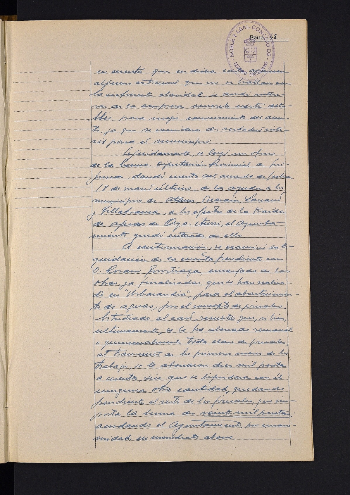Rosario Irastorza Izaguirre umezurtza Probintziako Benefizentziaren ardurapean gelditzen da. # Ur kontagailuak instalatzeko zerbitzua ematen duten enpresak aztertzea. # Aldundiaren komunikazioa Aiaiturrietako urak ekartzeko Ataun, Lazkao, Beasain eta Ordizia arteko ur mankomunitaterako laguntza onartzen duena. # Urbaraundiko obrengatik ordaintzeke dagoen kontuaren kitapena. # 1959ko laugarren hiruhileko kitapena Aldizkari Ofizialean argitaratzea. # Udalaren eraikinaren garbiketa onartzea. # Tolosako Alkatetzaren proposamena hirigintza bulego bat mantentzeko mankomunitate bat sortzeko. # Kredituak gaitzea. # Hainbat faktura onartzea.