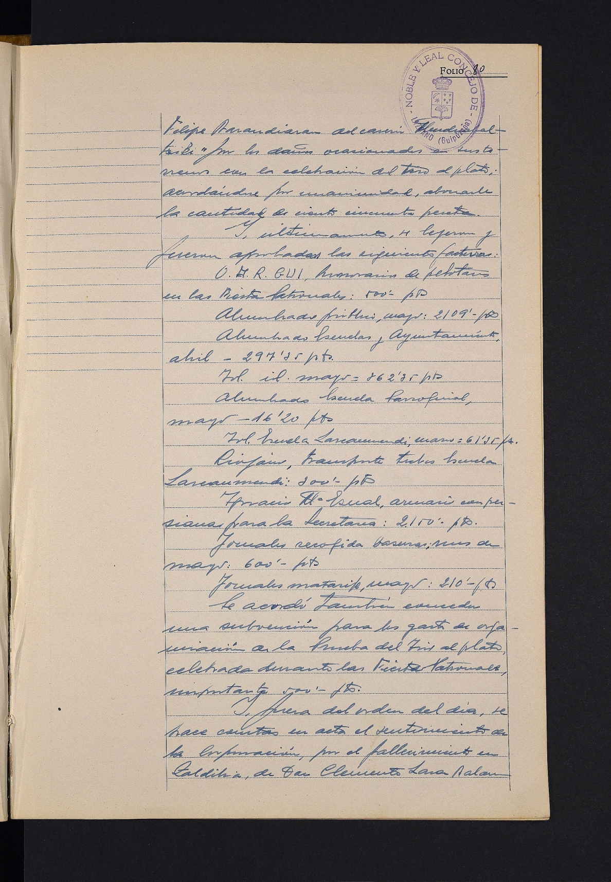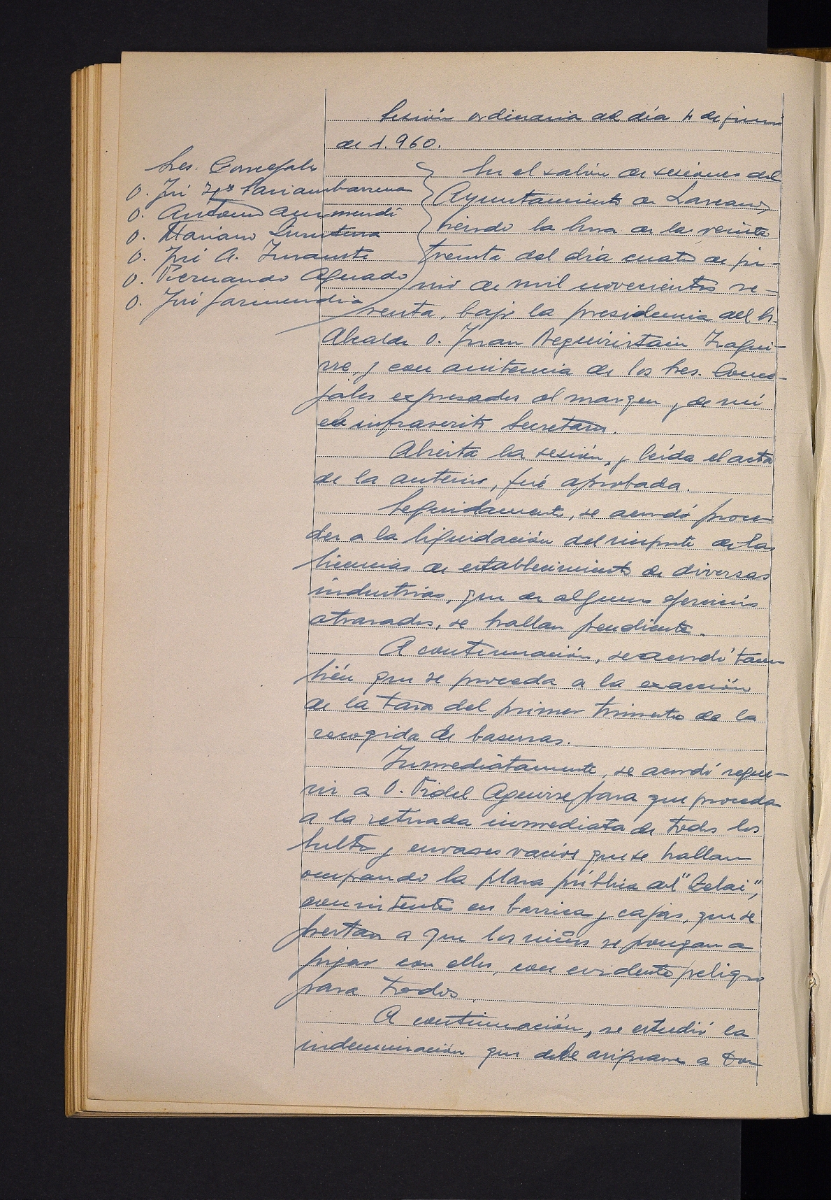 Hainbat industria ezartzeko lizentzien zenbatekoaren kitapena. # Zaborrak biltzeko tasaren ordainarazpena. # Zelai plazan dituen ontzi hutsak kentzeko eskatzea Fidel Aguirreri. # Mendizabaltxiki baserriko Felipe Barandiarani kalte-ordaina ematea plater-tiroak bere lurretan eragindako kalteengatik. # Zenbait faktura onartzea. # Plater-tiroko lehiaketa antolatzeko dirulaguntza onartzea. # Jose de Lasa medikuaren aita den Clemente Lasaren heriotzagatik doluminak aurkeztea.
