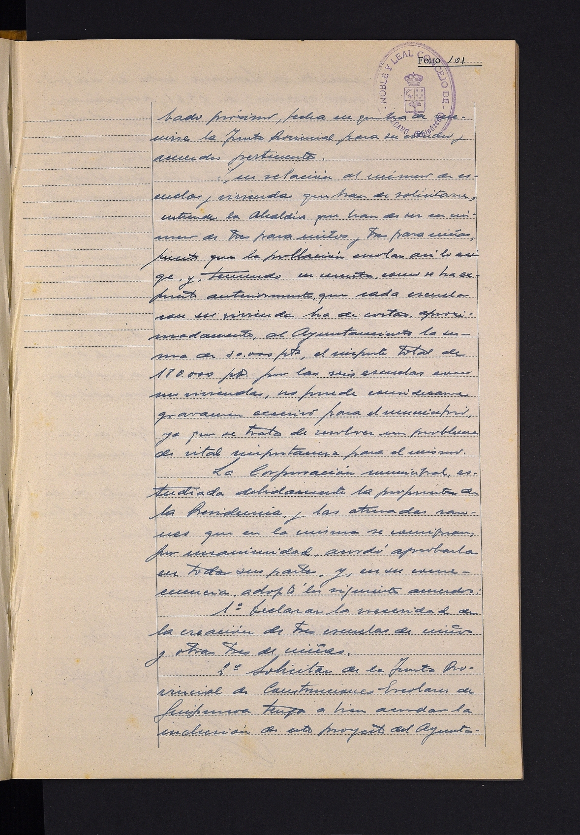 Lehen hezkuntzako eskola publikoen eskasiari buruzko arazoa aztertzea. Gobernadore Zibilarekin irtenbideak bilatzea, dirulaguntzak bilatzea, eskola berriak eraikitzeko aukerak aztertzea.