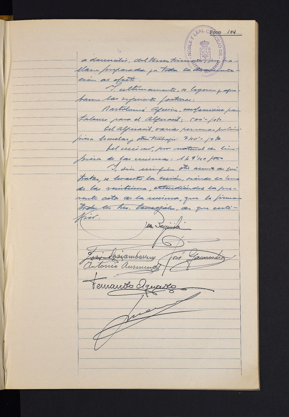 Segurako Ongintza Batzordearen ofizioa, Maria Rosario Irastorza neskatoa onartzen duena. # Hirugarren hiruhileko kontuak onartzea. # Ur zerbitzuaren tasa kobratzea erabakitzea. # Zenbait fakturaren onarpena.