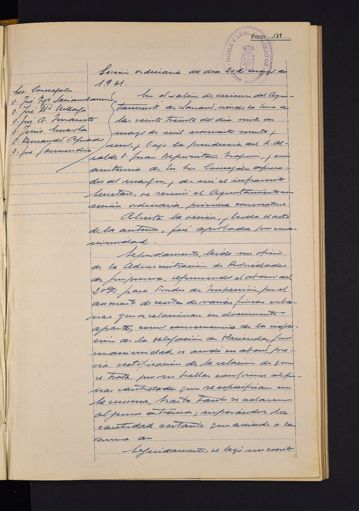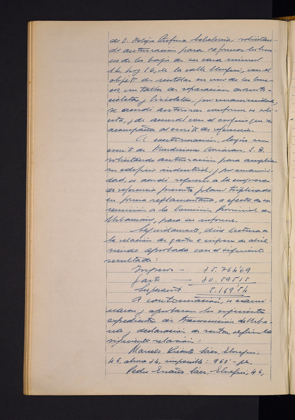 Gipuzkoako Jabetza Administrazioaren ofizioa, zenbait finkaren errentak handitzeagatiko ordainketari buruzkoa. # Baimena ematen zaio Felipe Zufiria Echeverriari Elosegi kaleko 16 zenbakian duen etxean motorrak eta bizikletak konpontzeko tailer bat jartzeko berrikuntzak egiteko. # Fundiciones Arriaran enpresaren eskaera bere industria-eraikina handitzeko. # Apirileko gastuak eta diru-sarrerak onartzea. # Finken jabetza aldaketa espedienteak onartzea. # Hainbat fakturaren onarpena.
