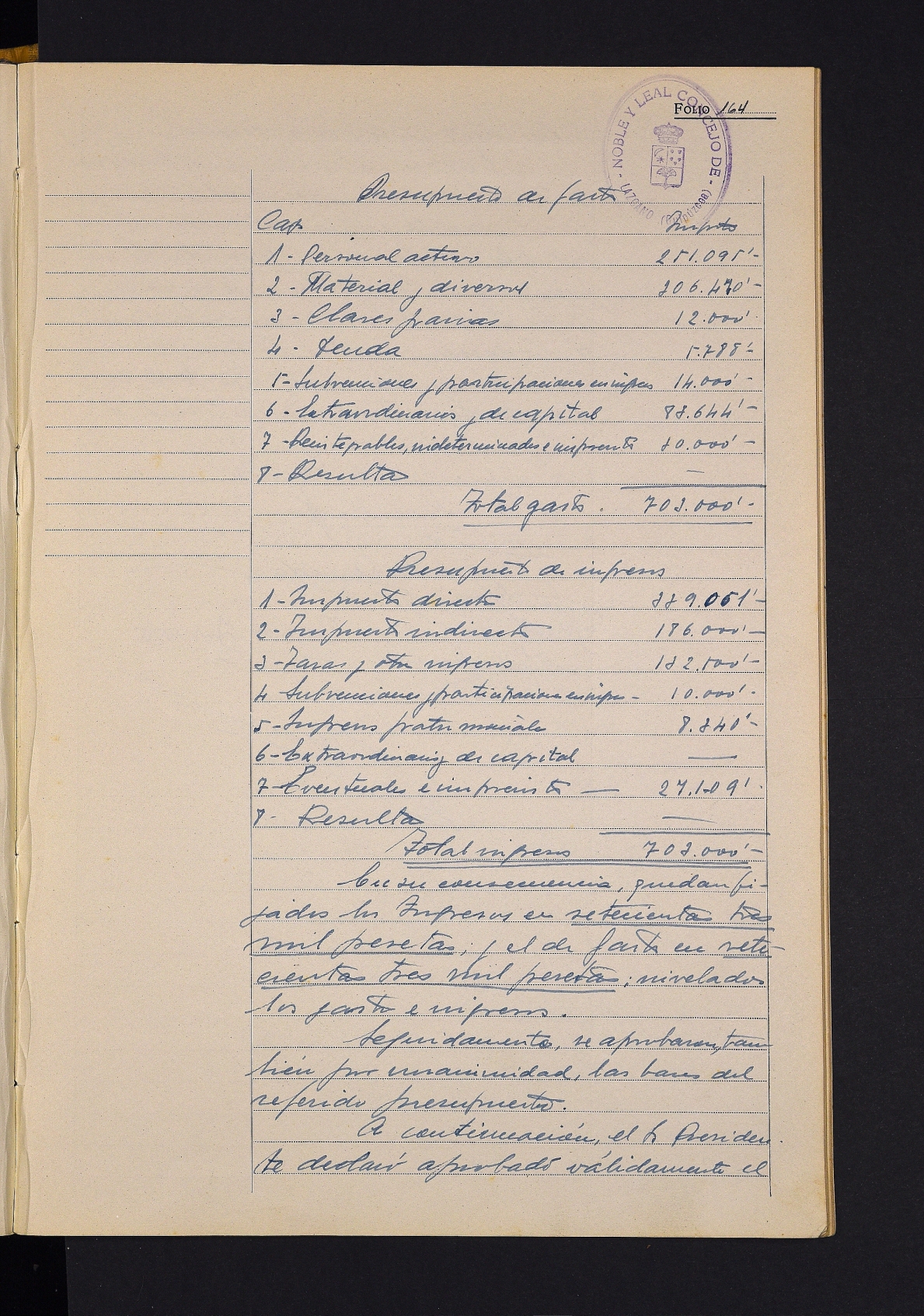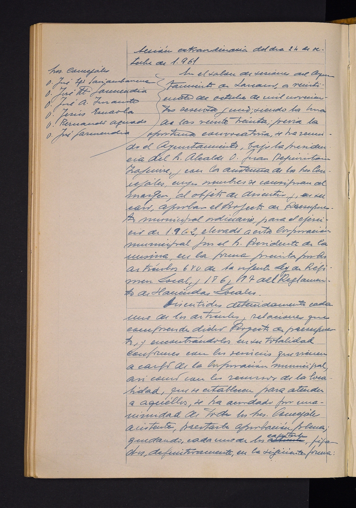 1962ko ekitaldirako ohiko aurrekontuaren proiektua onartzea.