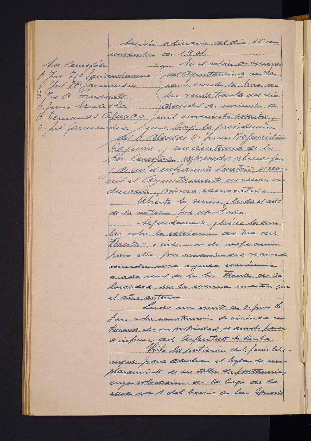 Udalerriko maisu-maistra bakoitzari laguntza ekonomikoa ematea adostea maisuaren eguneko ospakizunera joan ahal izateko. # Jesusek bere jabetzako lurretan etxebizitza eraikitzeko aurkeztutako eskabidea. # Iturgintzako tailer bat jartzeko Jesus Echeverriak aurkeztutako eskaera aztertzeko uztea. # Jose Lasa medikuak eta beste bizilagun batzuek bidalitako idazkia, Lazkaomendiko errepidearen eta Elosegi kalearen arteko bidegurutzeko ikuspen egoera txarra salatzeko. # Hiri-finkak eskualdatzeko espedienteak onartzea. # Urriko gastuak eta diru-sarrerak onartzea. # Hainbat fakturaren onarpena.