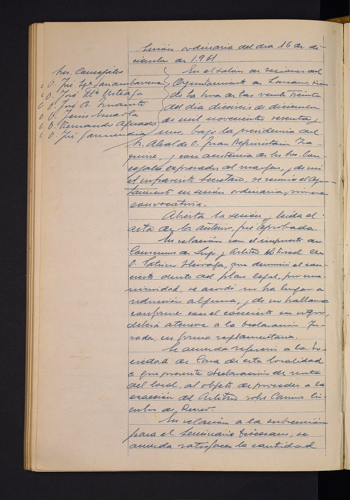 Luxuzko kontsumo-zergaren kobrantzak aztertzea. # Seminariorako laguntza ekonomikoa ematea onartzea. # Jesus Vitoria Arratibelek bere jabetzako lurrak partzelatzeko aurkeztutako eskabidea onartzea. # Azaroko gastuak eta diru-sarrerak onartzea. # Alejandro Machain Larreari baimena ematea bizikletak eta motorrak konpontzeko lantegi bat irekitzeko Elosegi kaleko 16 zenbakian. # Lorenzo Amenabarro Esnaolak etxebizitzak eraikitzeko aurkeztutako eskabidea aztertzea. # Banco Guipuzcoanon kontu korrontea irekitzea Ogasun Ordezkaritzaren ordainketak jasotzeko. # Lazkaomendiko maisuarentzako ordainsaria onartzea. # Hiri-aberastasunari buruzko hainbat zerga berrikustea. # Funtzionarioei dagozkien soldatak eta ordainsariak ordaintzea. # Hainbat fakturaren onarpena.