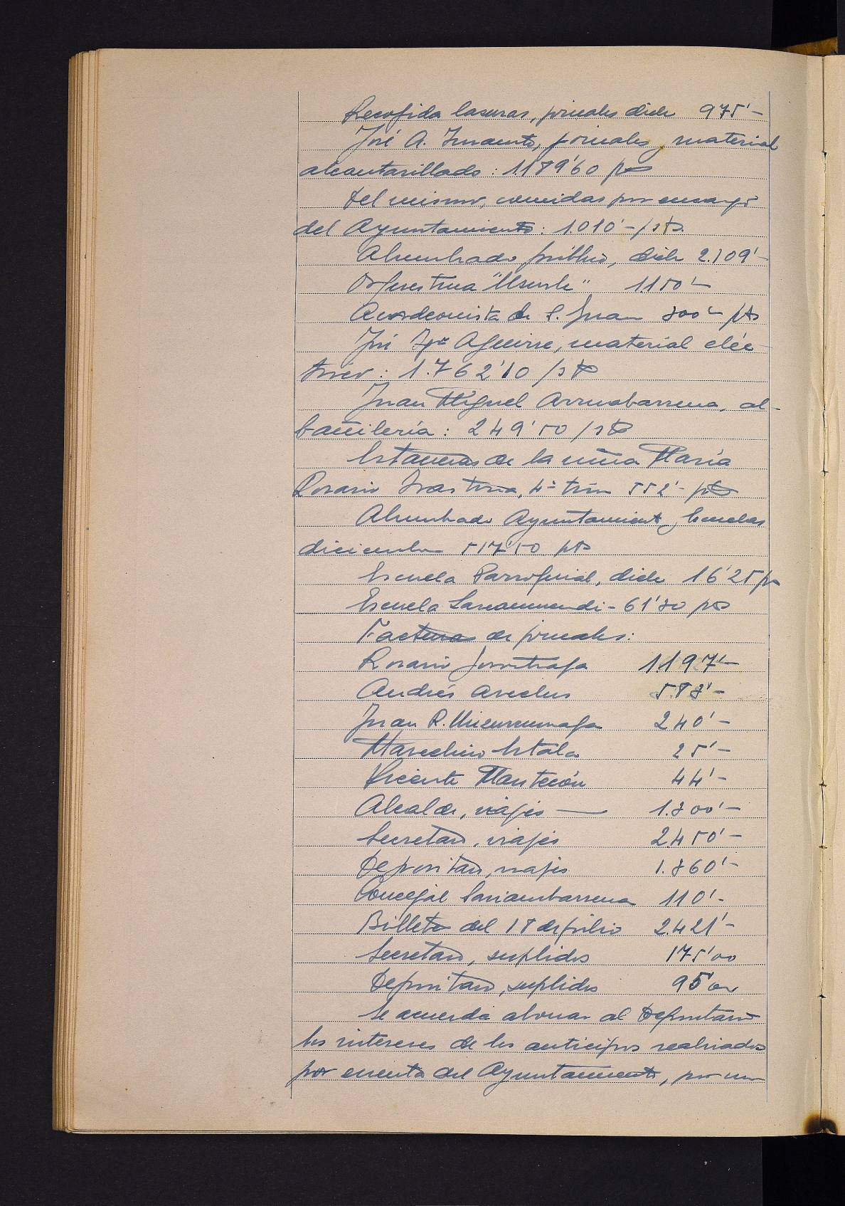 Zenbait faktura onarpena. # Udalaren kontura egindako aurrerakinen interesak gordailuzainari ordaintzea. # Elosegi kaleko espaloiak konpontzeko obren kitapena aztertzea.