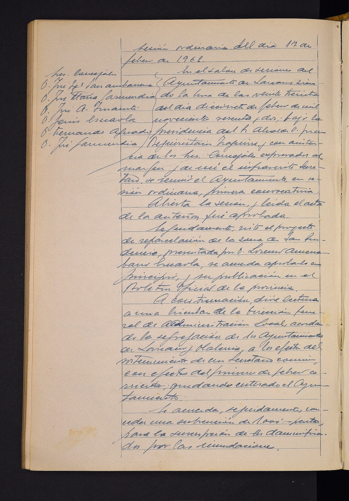 Lorenzo Amenabarro Esnaolak aurkeztutako San Prudentzio auzoko birpartzelazio-proiektua onartzea. # Toki Administrazioko Zuzendaritza Nagusiaren zirkularra idazkaria partekatzearen arloan Lazkaoko eta Olaberriako banaketari buruz. # Sevillako uholdeen kaltetuentzako dirulaguntza onartzea. # Urtarrileko gastu eta diru-sarrerak onartzea. # Fakturen onarpena.