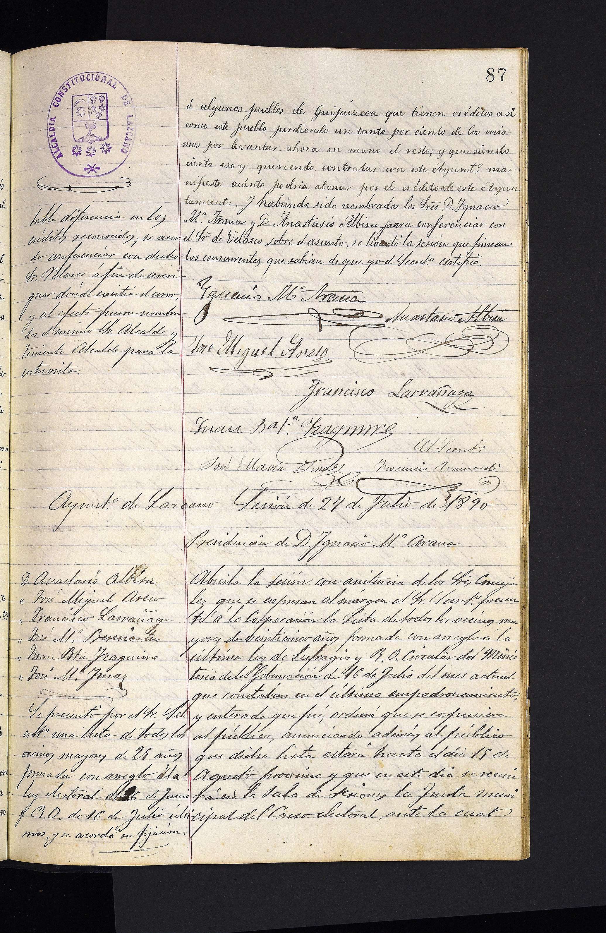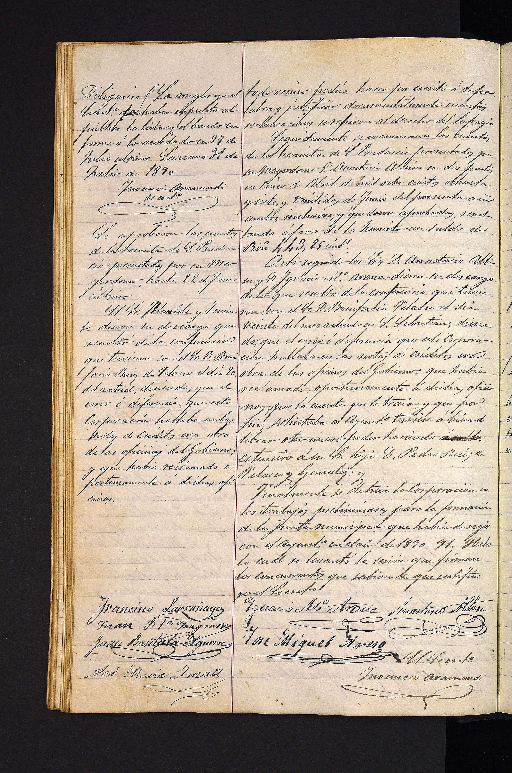 Hautesle errolda onartzea # San Prudentzio baselizaren kontuak onartzea # Bonifacio Belaskorekin Donostian izandako bileraren gastuak ordaintzea # Udal berria eratzeko lanei ekiteko erabakia