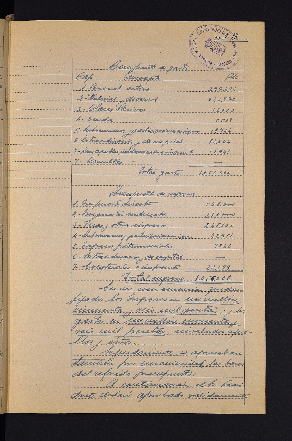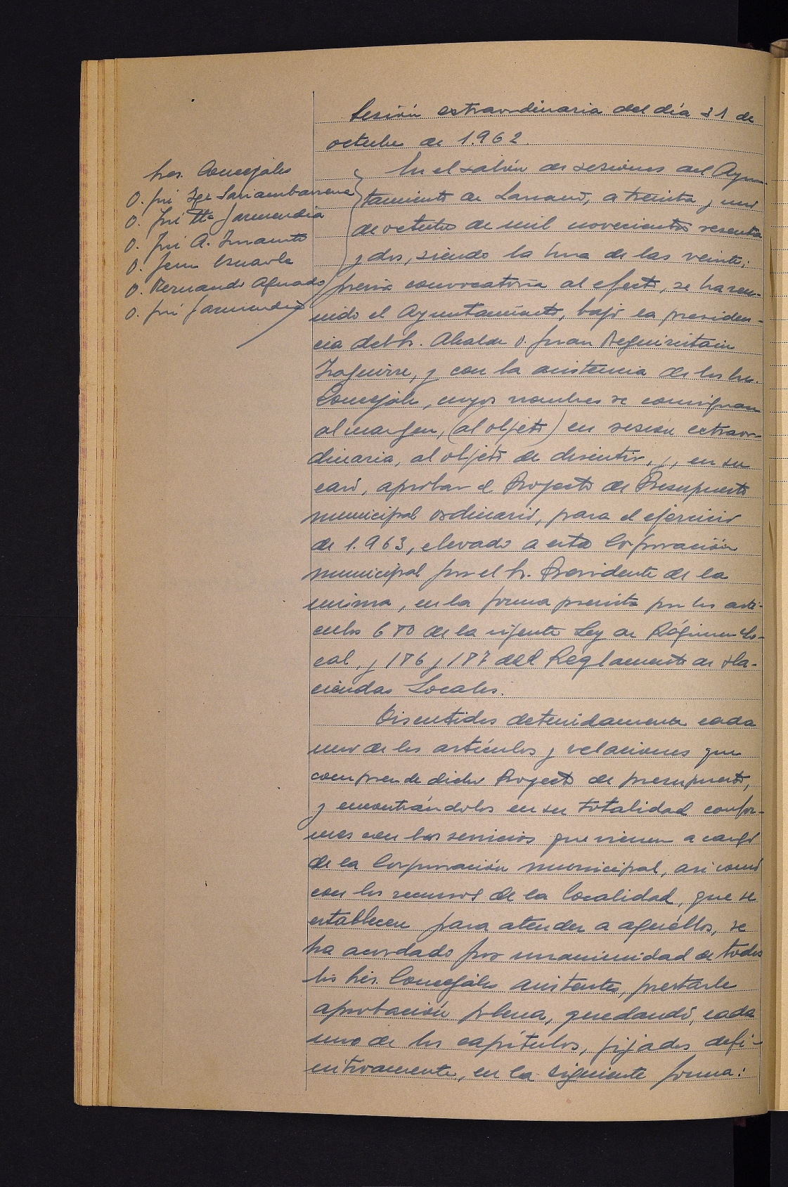 1963ko ekitaldiko ohiko aurrekontuaren proiektua onartzea. # Aurrekontua jendaurrean jartzea eta kopia bat Ogasun Ordezkaritzara bidaltzea adostea.