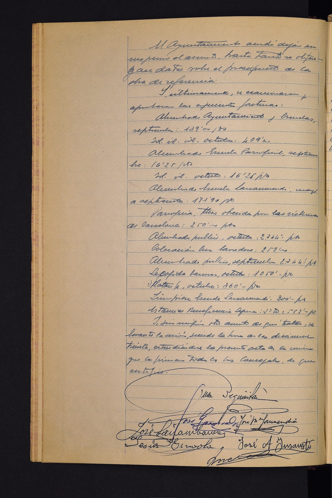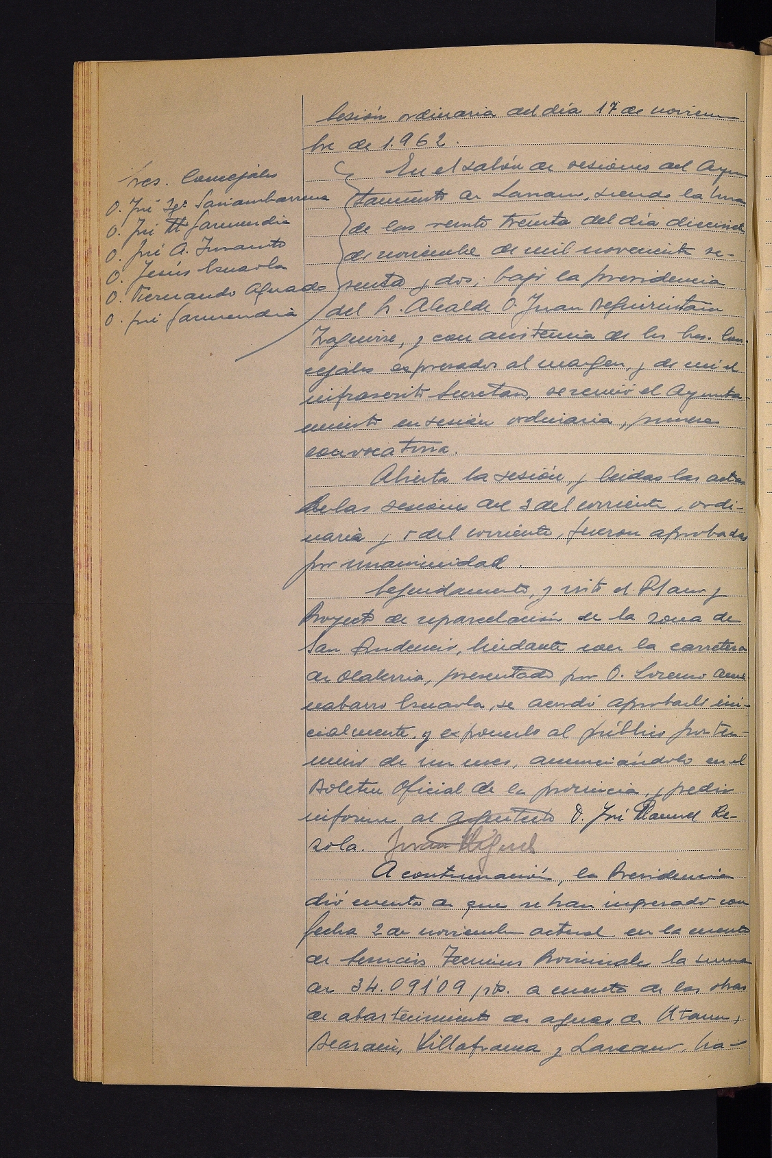 Lorenzo Amenabarro Esnaolak aurkeztutako Olaberriako errepidearen mugakide den San Prudentzio esparruko errepartzelazio proiektua onartzea. # Mankomunitateko ur-hornidurako obrei dagokien zenbatekoa Probintziako Zerbitzu Teknikoen kontuan sartzea. # Informazio eta Turismoko Probintzia Ordezkaritzak eskatutako datuak ematea turismo-txosten bat egin ahal izateko. # Urriko gastuak eta diru-sarrerak onartzea. # Eskolarako materiala erostea onartzea. # Olaberriako alkatetzak bidalitako ofizioaren irakurketa, zubi bat eraikitzeko laguntza eskatuz. # Hainbat fakturaren onarpena.
