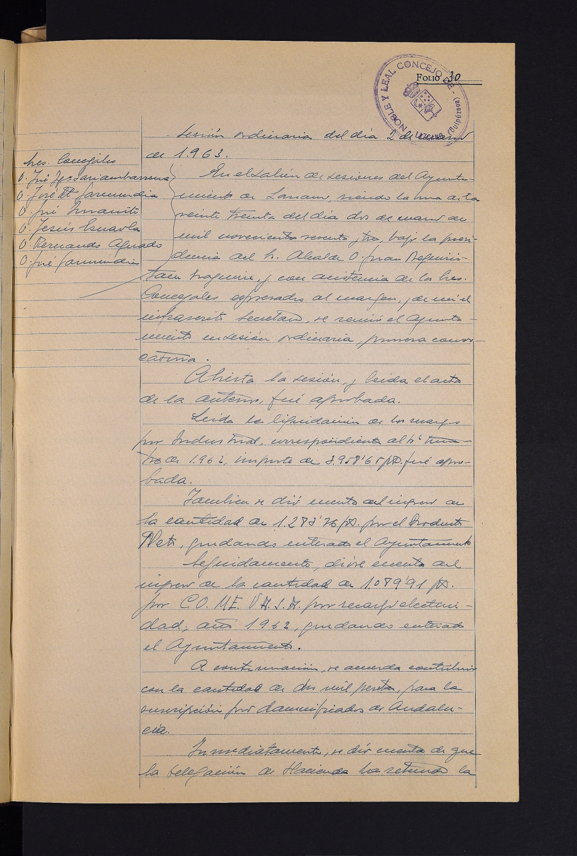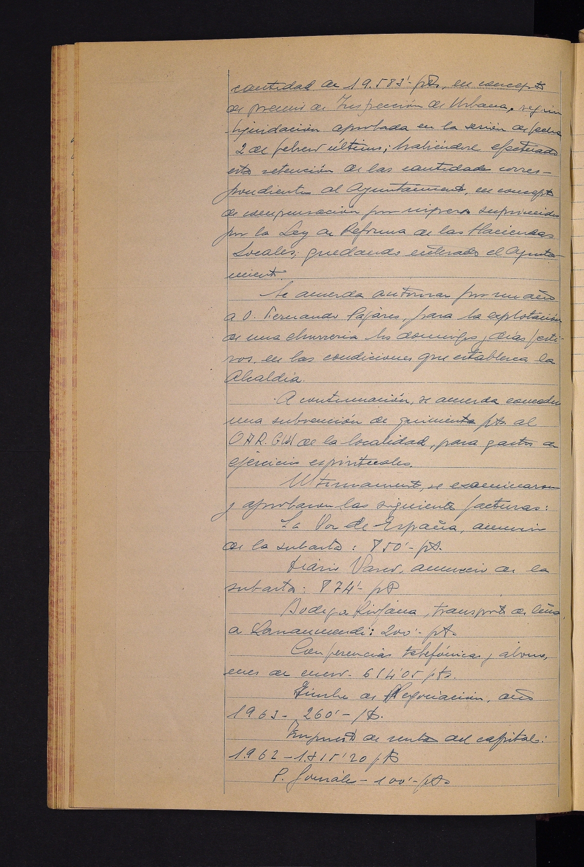Industria zergaren errekarguen kitapenaren irakurketa. # Produktu garbiaren gaineko zergagatik ordaindutako zenbatekoaren berri ematea. # Comevasa enpresak elektrizitate-errekarguagatik egindako diru-sarreraren berri ematea. # Andaluziako kaltetuentzako dirulaguntza onartzea. # Ogasun Ordezkaritzaren atxikipena hiri-ikuskaritzagatik. # Fernando Pajaresi urtebetez txurro-denda bat ustiatzeko baimena ematea. # Oargui taldeari dirulaguntza ematea ekitaldi espiritualetako gastuak ordaintzeko. # Zenbait fakturaren onarpena.