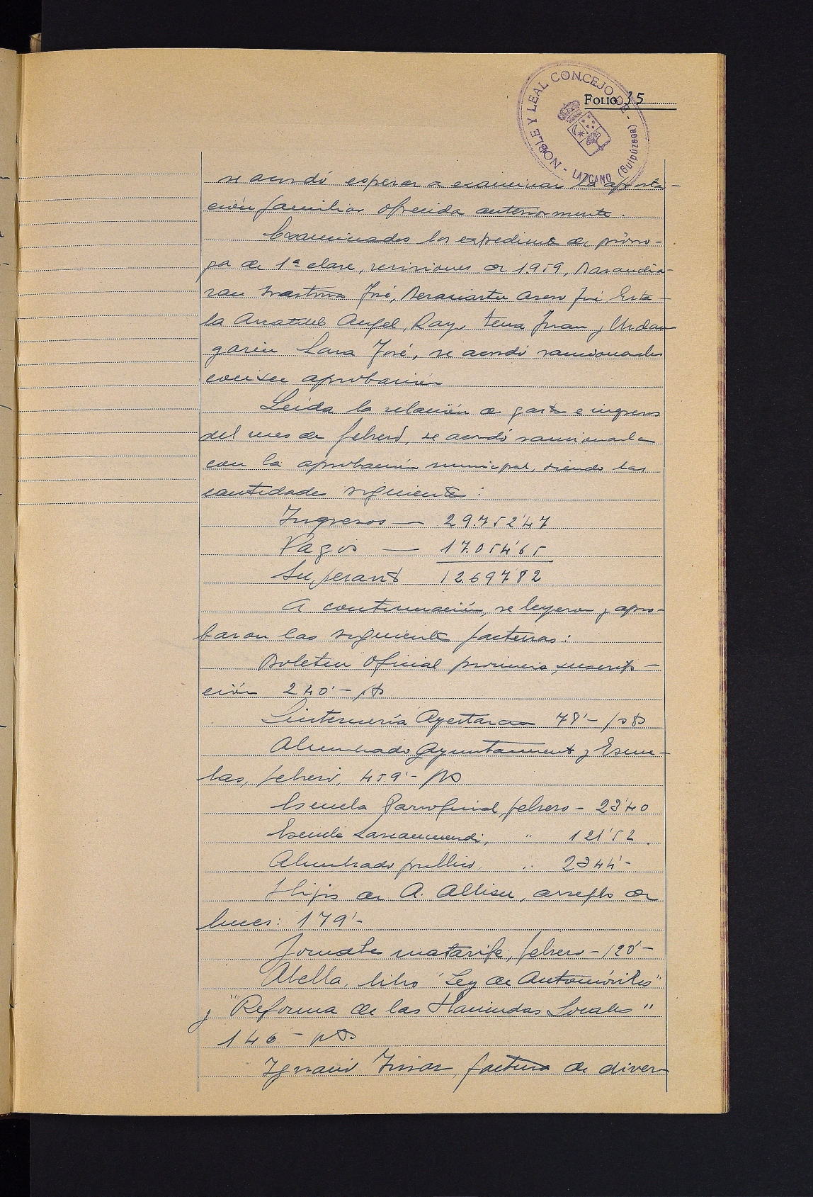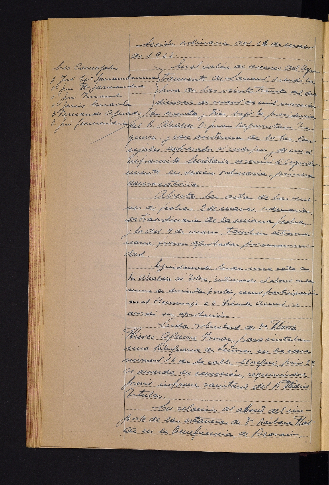 Tolosako alkatetzaren gutuna, Vicente Asueroren omenaldirako ekarpena egiteko. # Maria Nieves Aguirre Irizarrek aurkeztutako eskaera, Elosegi kaleko 16 zenbakian ile-apaindegi bat jartzeko. # Barbara Maizaren egonaldiaren ordainketa Beasaingo Ongintzan. # Soldadutzara joateko luzapen espedienteak onartzea. # Otsaileko gastuak eta diru-sarrerak onartzea. # Zenbait fakturaren onarpena.