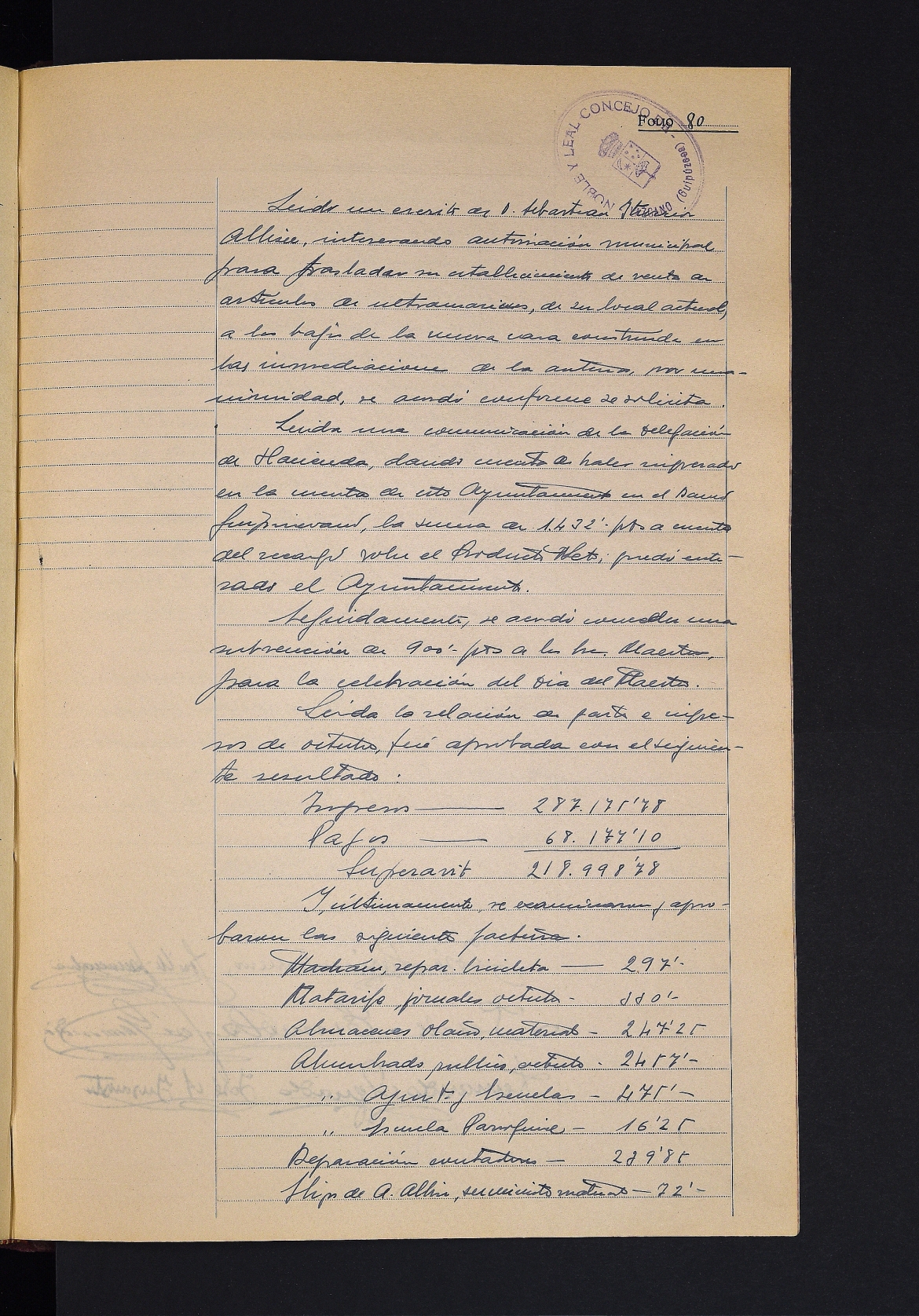 Zerbitzu Teknikoen Batzorde Probintzialaren idazkia, Beasain, Ataun, Lazkao eta Ordiziako mankomunitatearen ur-hornidurako obra onartzen duena. # Eskola-eraikuntzen Batzorde Probintzialaren jakinarazpena, irakasleentzako etxebizitzak eraikitzeko dirulaguntza ematea onartuz. # Kredituak gaitzea. # Baimena ematen zaio Sebastian Iturrioz Albisuri bere janari-denda egungo lokaletik, antenatik gertu eraikitako etxeko lokal batera eramateko. # Maisu-maistrei dirulaguntza ematea adostea maisuaren eguna ospatzeko. # Urriko gastuak eta diru-sarrerak onartzea. # Zenbait fakturaren onarpena. # Doluminak ematea adostea Fernando Aguado zinegotziaren aita den Tomas Aguado Gonzalezen heriotzagatik.