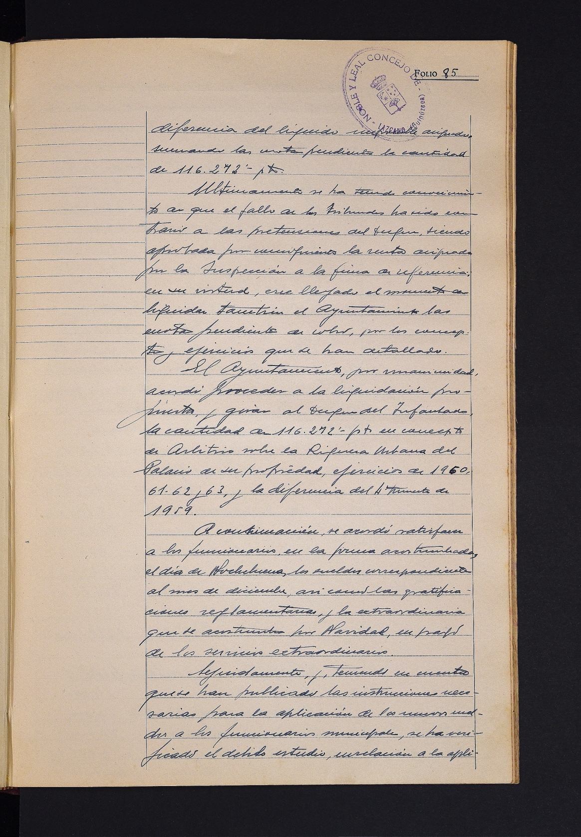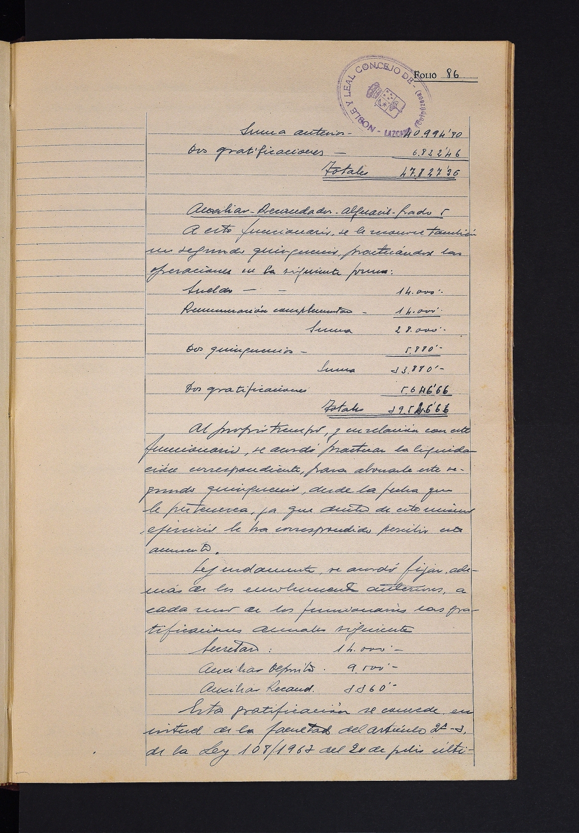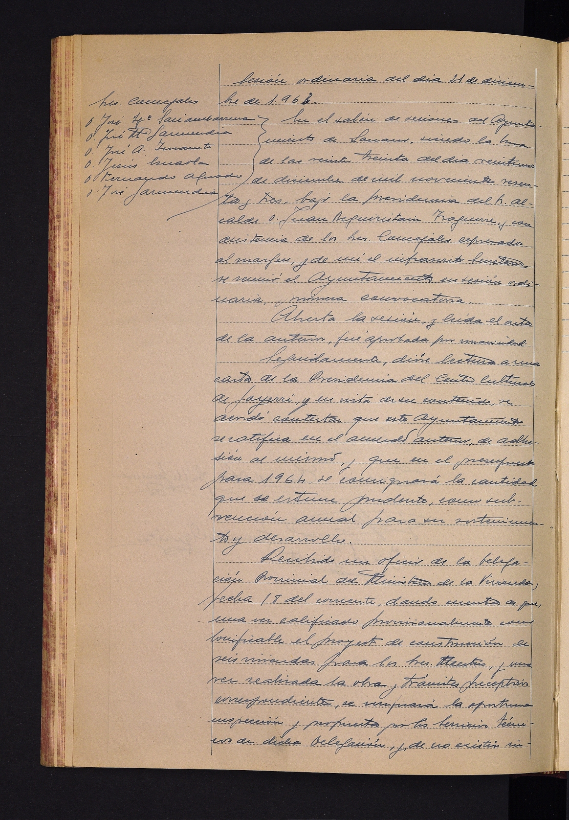 Goierriko Kultur Etxerako dirulaguntza onartzea. # Etxebizitza Ministerioaren Probintzia Ordezkaritzaren ofizioa, irakasleentzako eraikitako etxebizitzak diruz lagundutako errenta mugatuko etxebizitza gisa kalifikatzeari buruzkoa. # Dokumentazioa Etxebizitza Ministerioaren Probintzia Ordezkaritzan dokumentaioa entregatzea, irakasleentzako etxebizitzak eraikitzeari dagokion dirulaguntzarako. # Candelaria Sarasola Alegria Tolosako Ongintzan sartzea. # Idazkaritzan emandako zerbitzuengatik Milagros Erausquini ordainsaria ematea adostea. # Lorenzo Amenabarro Esnaolak aurkeztutako San Prudentzioko Plan Partzialaren hasierako onespena eta Probintziako Aldizkari Ofizialean argitaratzea. # Hiri-aberastasunari dagokion zergaren kitapena egitea Infantadako Dukeari. # Funtzionarioentzat abenduko soldatak eta ordainsaria ordaintzea onartzea. # Udal funtzionarioei soldata berriak aplikatzeko jarraibideen irakurketa eta Lazkaoko Udaleko funtzionarioei dagozkien zifren kalkulua. # Zenbait faktura onartzea.