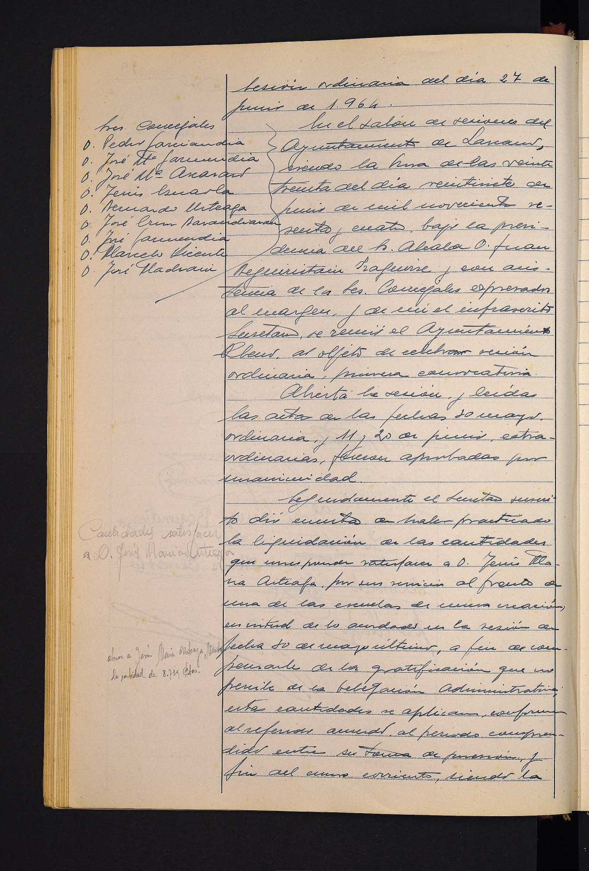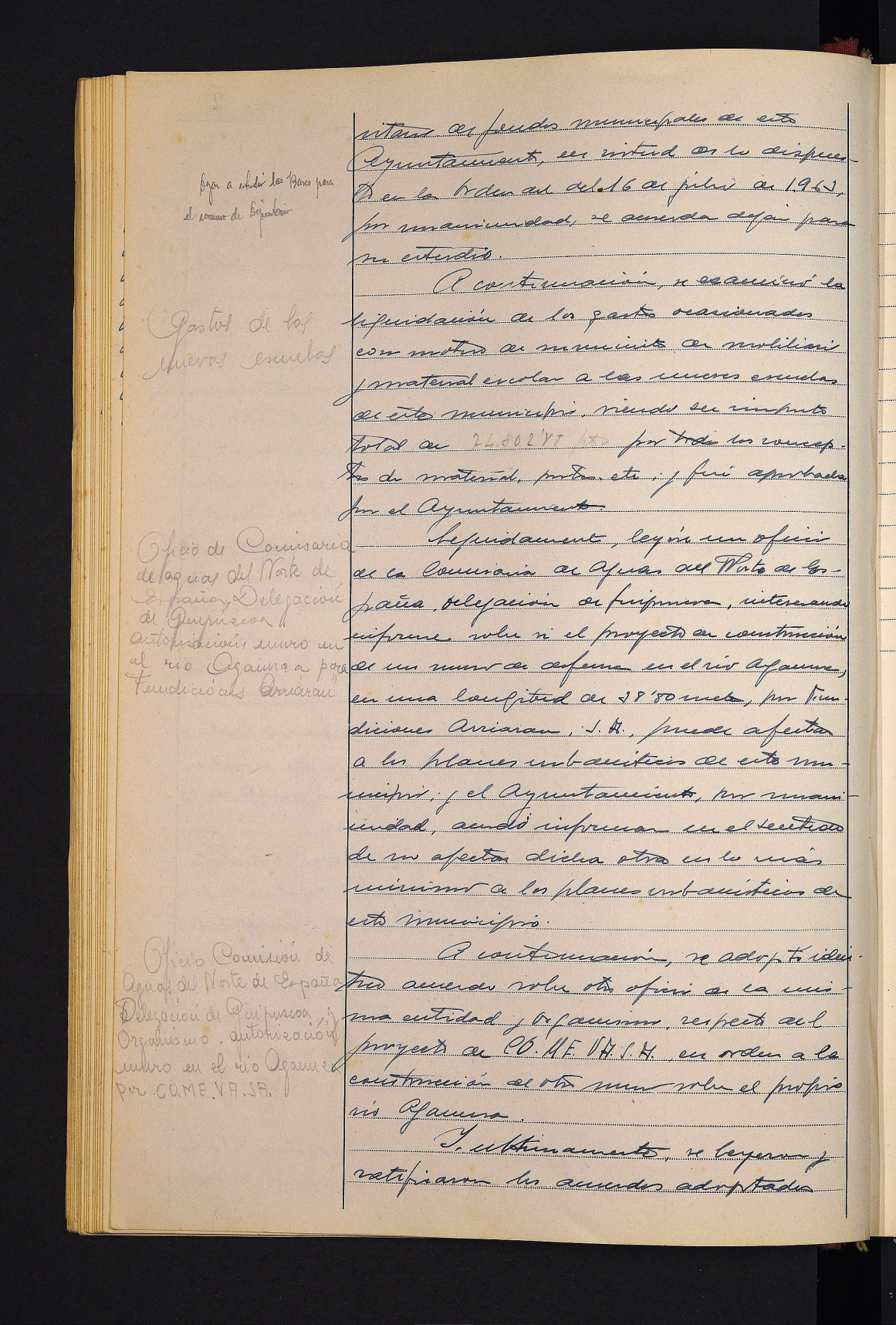 Jesus Maria Arteagari kitapena onartzea, sortu berri den eskola bateko buru gisa egindako zerbitzuengatik. # Pedro Lizargarateren koadroa erostea adostea. # Udalaren gordailuzain lehiaketarako oinarrien azterlana. # Eskola berrietarako materiala erosteko gastuen kitapena. # Agauntza ibaian defentsa-horma bat eraikitzeko proiektua baimentzen duen Iparraldeko Uren Komisariaren ofizioa.