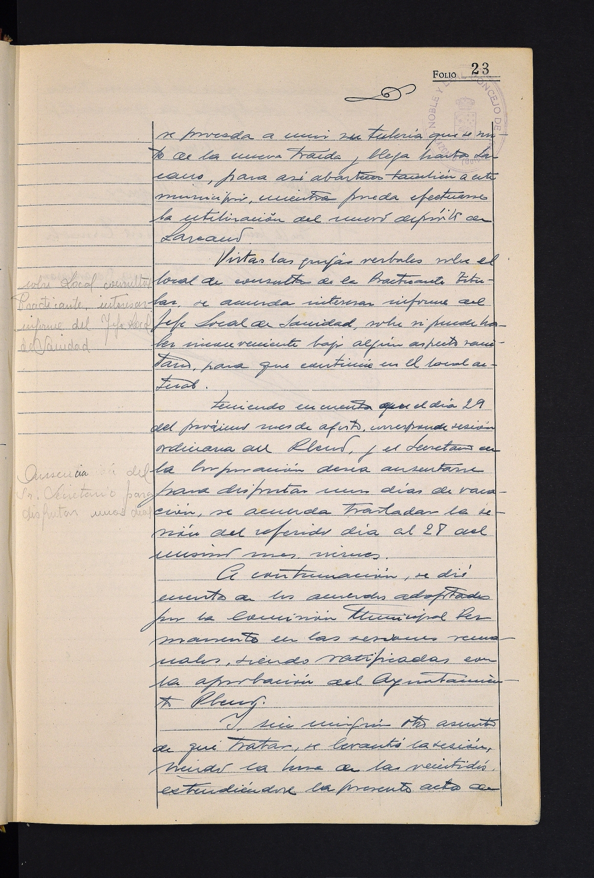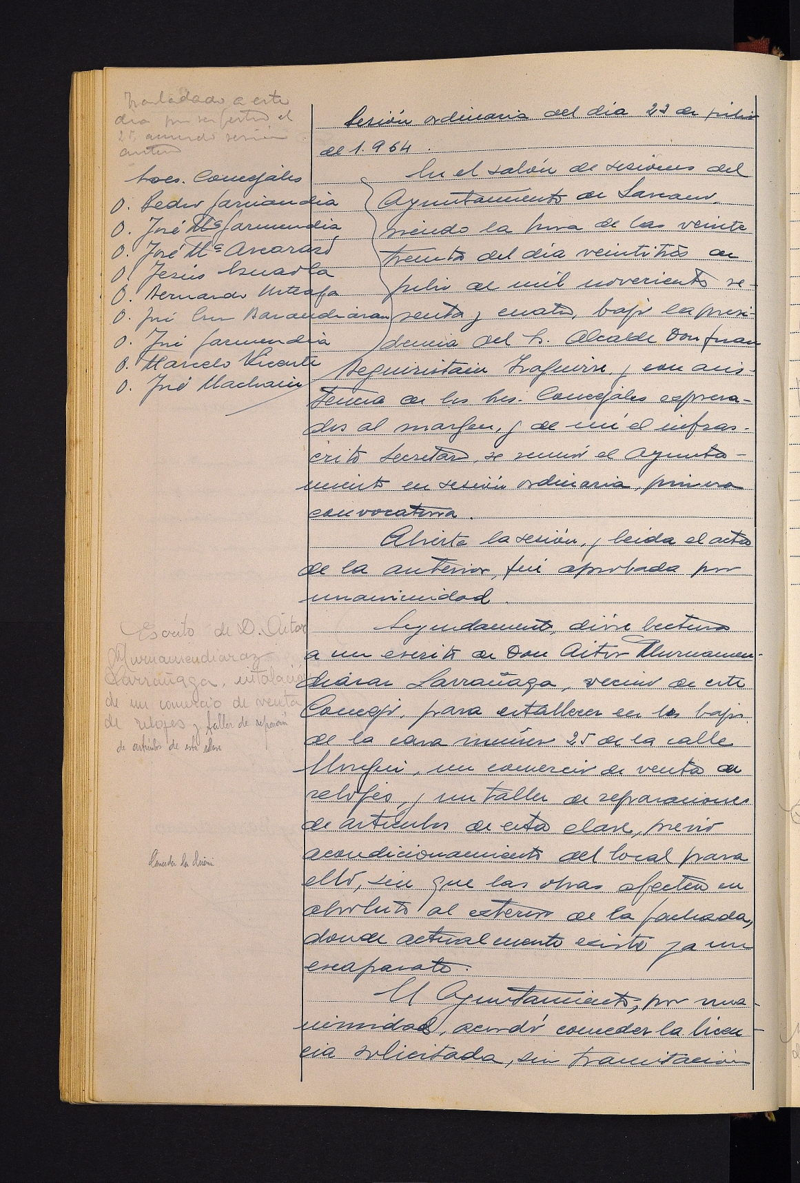 Aitor Muruamendiaraz Larrañagari lizentzia ematea Elosegi kaleko 25 zenbakian erlojuak saltzeko denda bat irekitzeko. # Zaborren arazoa konpontzeko errausketa-labe bat erosteko azterlana egitea. # Hirigintza Antolamenduko Plan Orokorraren kopia bat Etxebizitza Ministeriora bidaltzea. # Aldundiaren ofizioa, eskolak eraikitzeko dirulaguntza gehitzeko erabakiarekin. # Aldundiaren ofizioa, uren banaketa handitzeko proiektua onartzen duena. # Praktikantearen lokalaren arazoa konpontzeko tokiko osasun-buruari txostena eskatzea adostea.