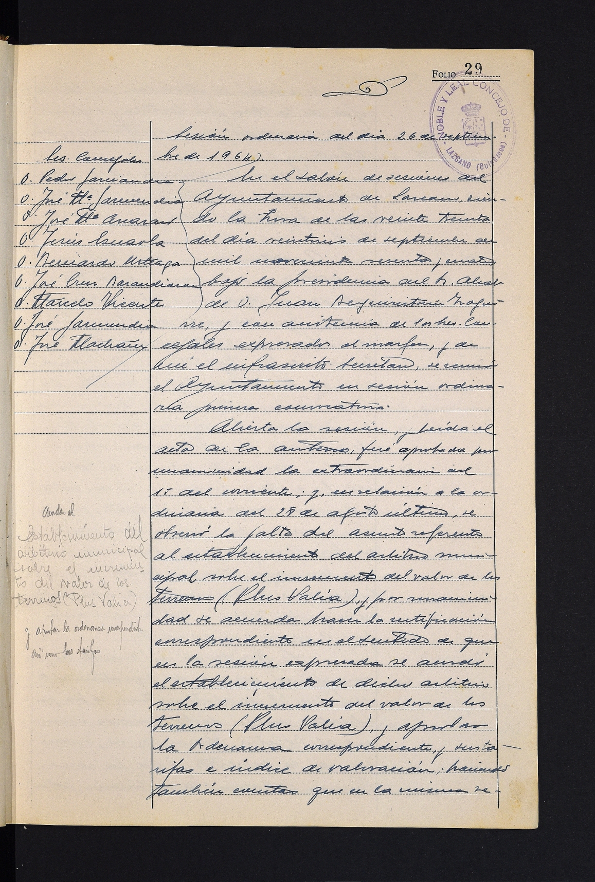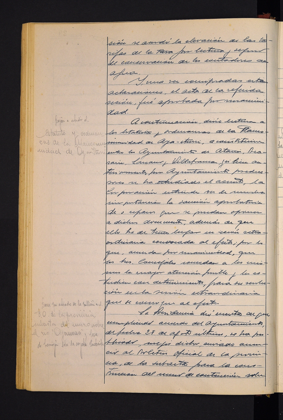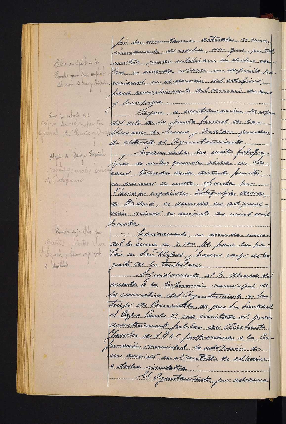 Irailaren 15eko aktari buruzko zehaztapenak. # Aiaiturrietako mankomunitatearen estatutuak eta ordenantzak irakurtzea. # Agauntza ibaian horma eraikitzeko enkantea Aldizkari Ofizialean argitaratzea. # Urak banatzeko obrak Antonio Suquiari esleitzea. # Fundiciones Arriaran enpresari eskatutako pabilioiak eraikitzea ukatzea. # Eskola berrietan ur-biltegi bat jartzea erabakitzea. # Enirio Aralar Batasuneko batzarraren aktaren irakurketa. # Udalerriaren aireko argazkia erostea adostea. # San Migel jaietarako dirulaguntza ematea. # Santiagoko udalaren ekimenarekin bat egitea erabakitzea, Pablo VI.a aita santua Done Jakueren urteko ekitaldira gonbidatua izan dadin.