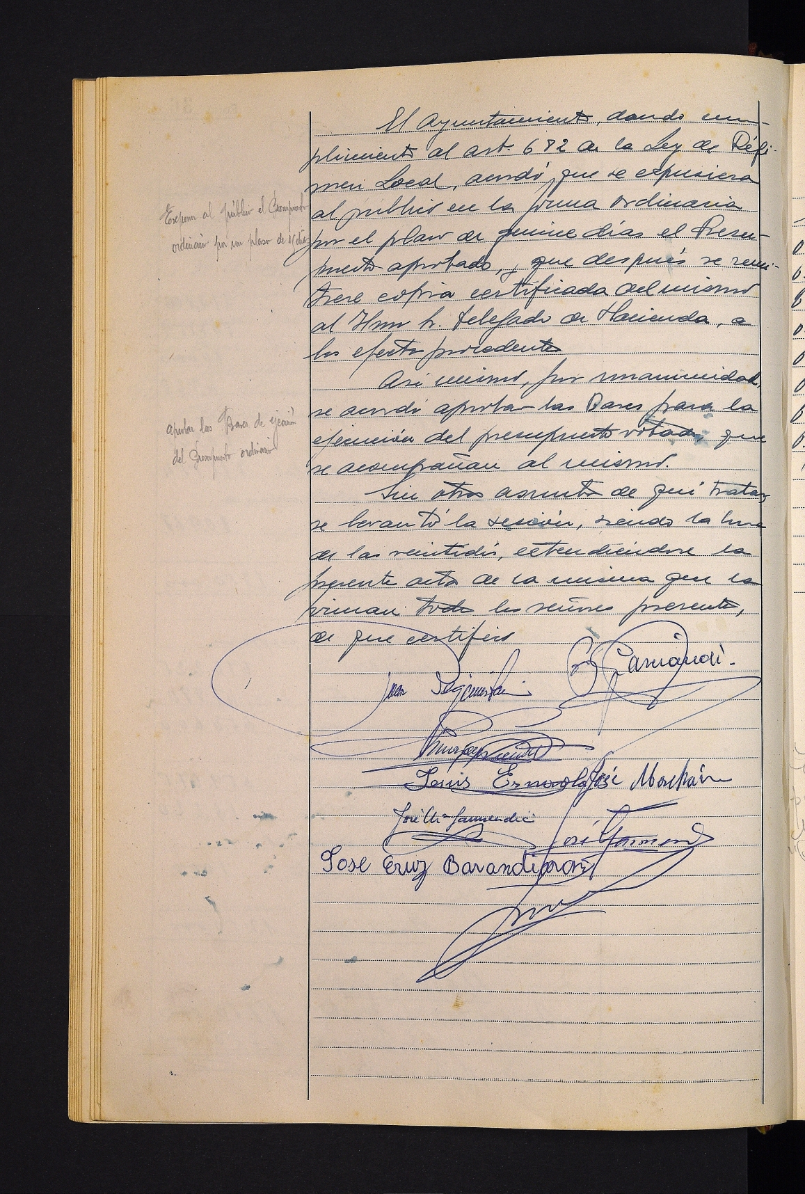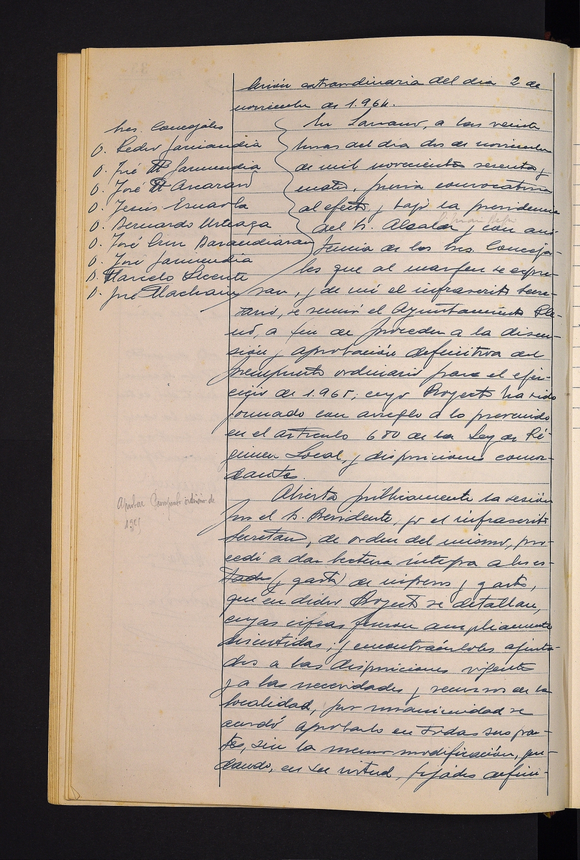 1965eko ekitaldirako ohiko aurrekontua eztabaidatu eta behin betiko onartzea. # Aurrekontua jendaurrean jartzea eta Ogasun ordezkariari kopia bat bidaltzea adostea. # Aurrekontua gauzatzeko oinarriak onartzea.