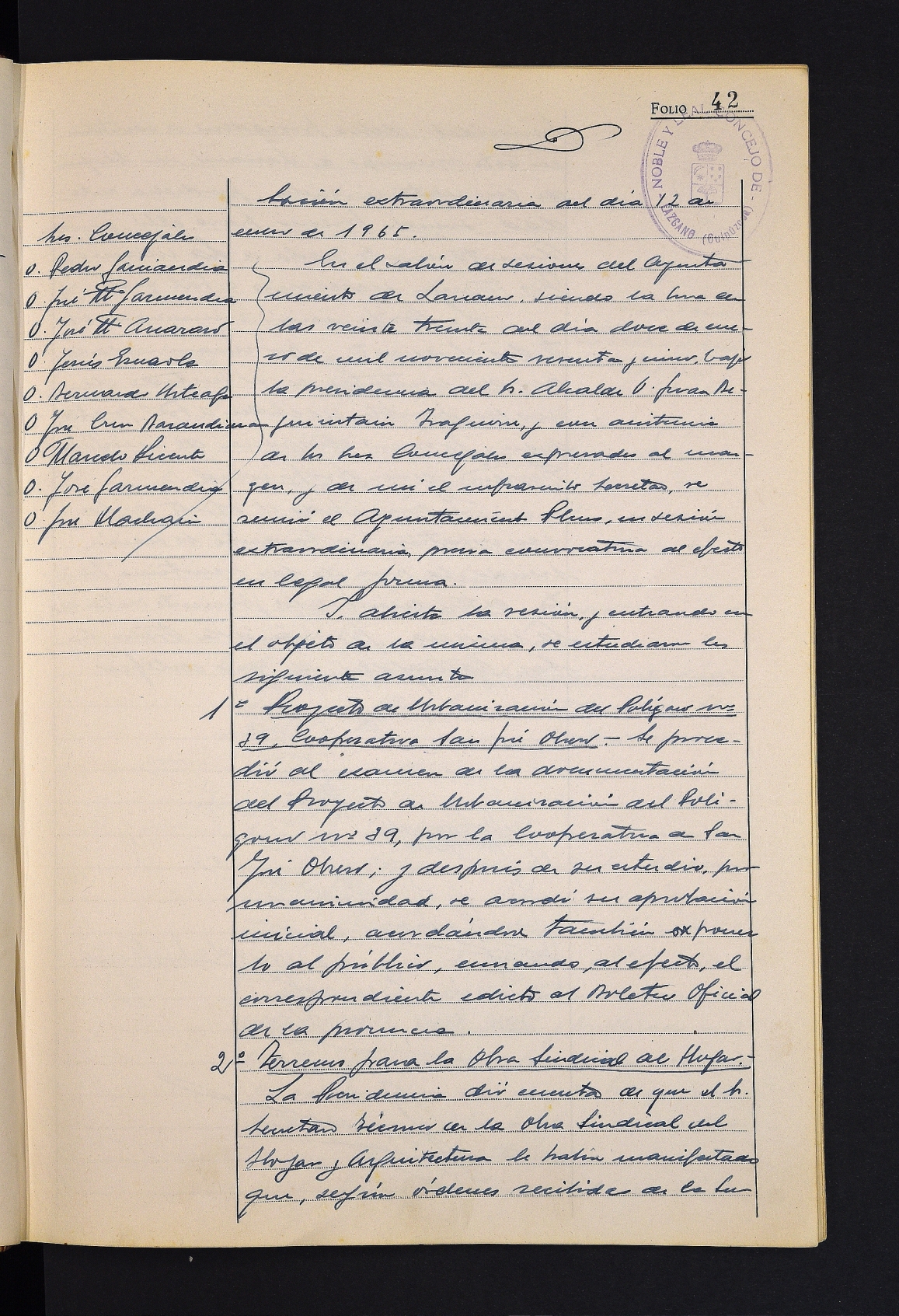 San Jose Obrero kooperatibak sustatutako Antolamendu Plan Orokorreko 39. poligonoa urbanizatzeko proiektuaren hasierako onespena. # Obra Sindical del Hogarrek etxebizitzak eraikitzeko lurrak lagatzeko egindako eskaera ukatzea.