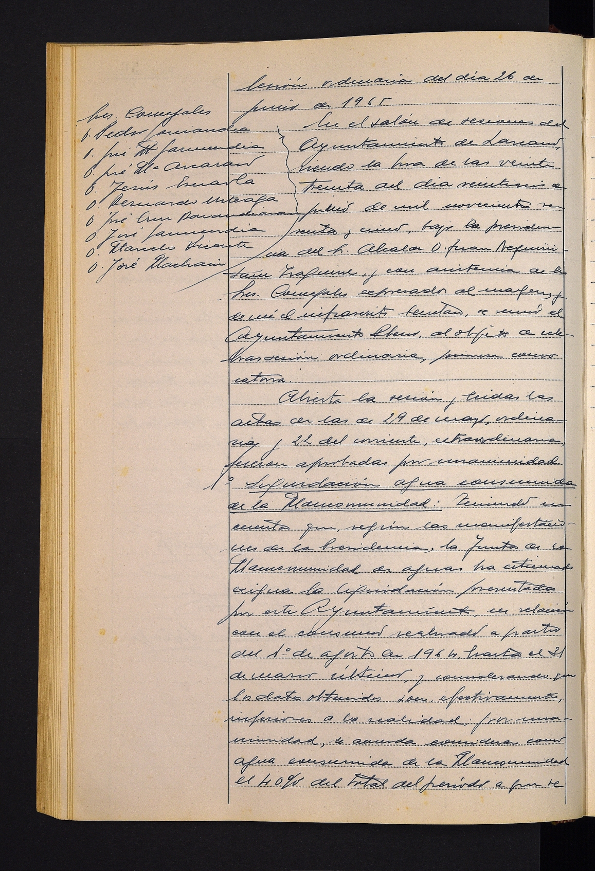 Mankomunitatean kontsumitutako uraren kitapena. # Taxi-zerbitzurako araudi proiektua prestatzea. # Landa-kontribuzioaren partaidetzari buruzko errekurtsoa irakurtzea. # Udal-bulegoetako planoak onartzea. # Hurrengo ohiko bilkurarako eguna aldatzea erabakitzea.