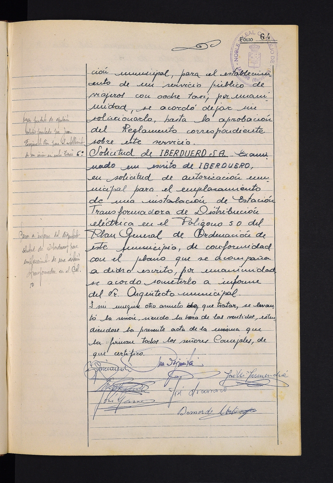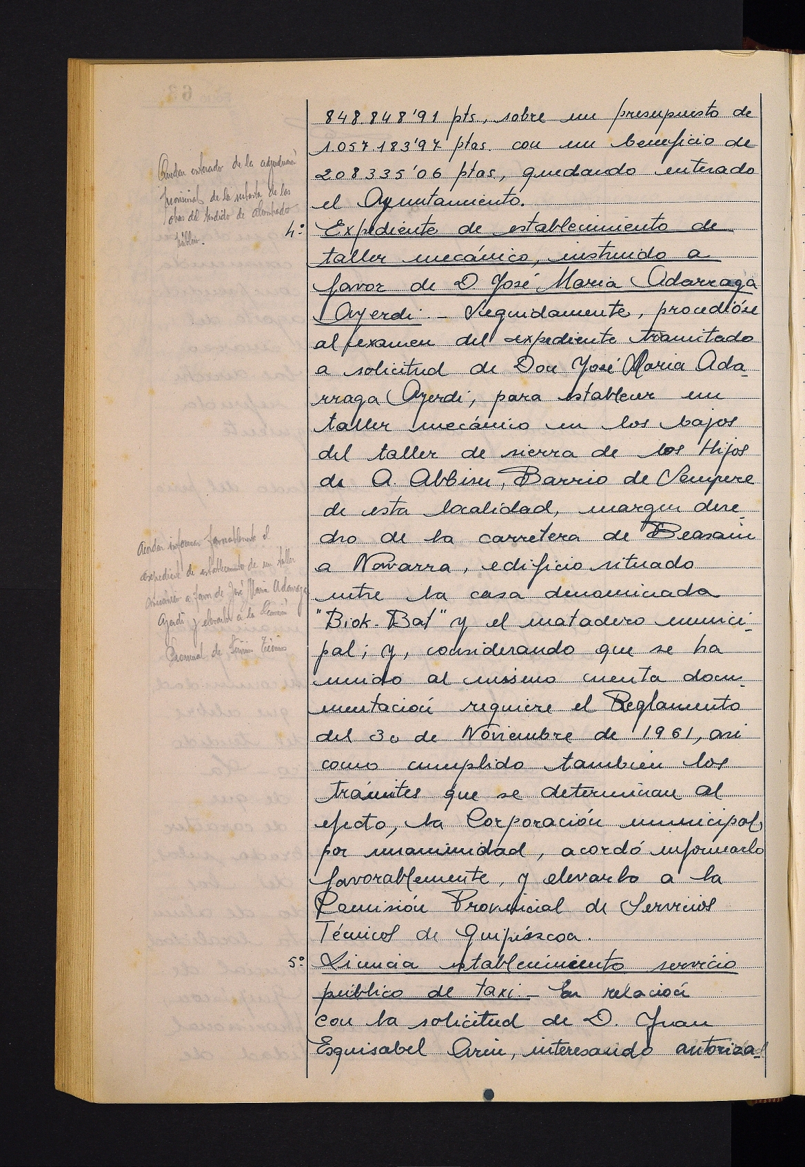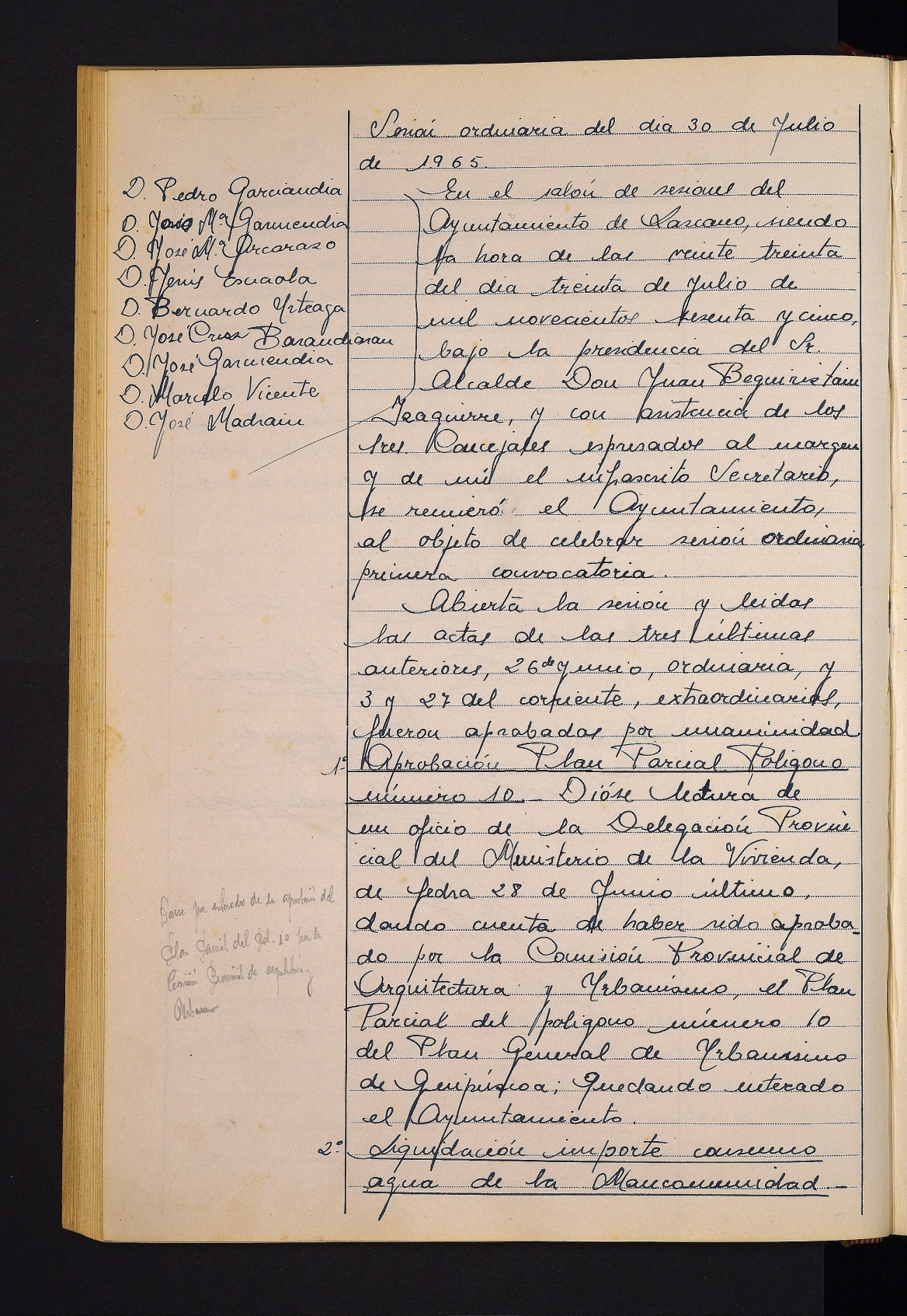 10. poligonoaren Plan Partziala onartzea. # Mankomunitatearen ur-kontsumoaren zenbatekoaren kitapena. # Linea elektrikoaren obren enkantea. # Jose Maria Adarraga Ayerdiri baimena ematea Senpere auzoan tailer mekanikoa ezartzeko. # Juan Esquisabeli taxi zerbitzua emateko lizentzia onartzea. # Iberdueroren eskaera, Antolamendu Plan Orokorreko 50. poligonoan banaketa elektrikoko estazio transformatzaile bat instalatzeko.