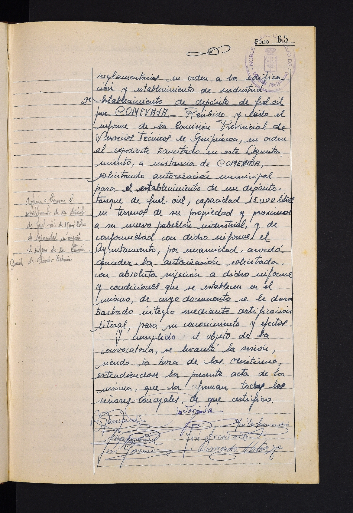 Iberduerori baimena ematea, Antolamendu Plan Orokorreko 50. poligonoan banaketa elektrikoko estazio transformatzaile bat instalatzeko. # Comevasari baimena ematea bere jabetzako lurretan fuel-olioko depositu bat jartzeko.