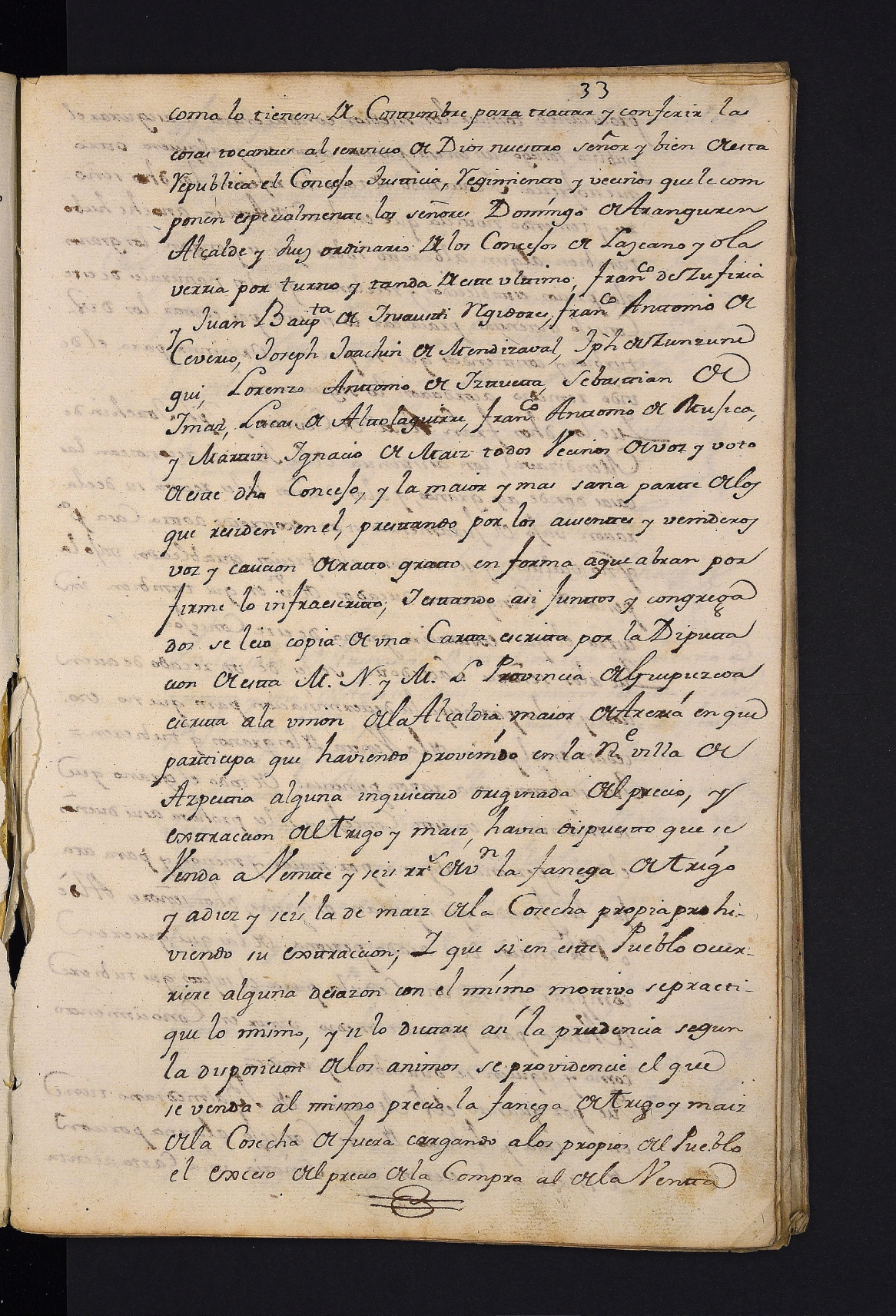 Aldundiaren gutunaren irakurketa, gariaren eta artoaren prezioari buruzko arauekin. # Aleak dauden etxeen deklarazioa egitea eskatzea, garia eta artoaren salmenta prezioak kontrolatu ahal izateko.
