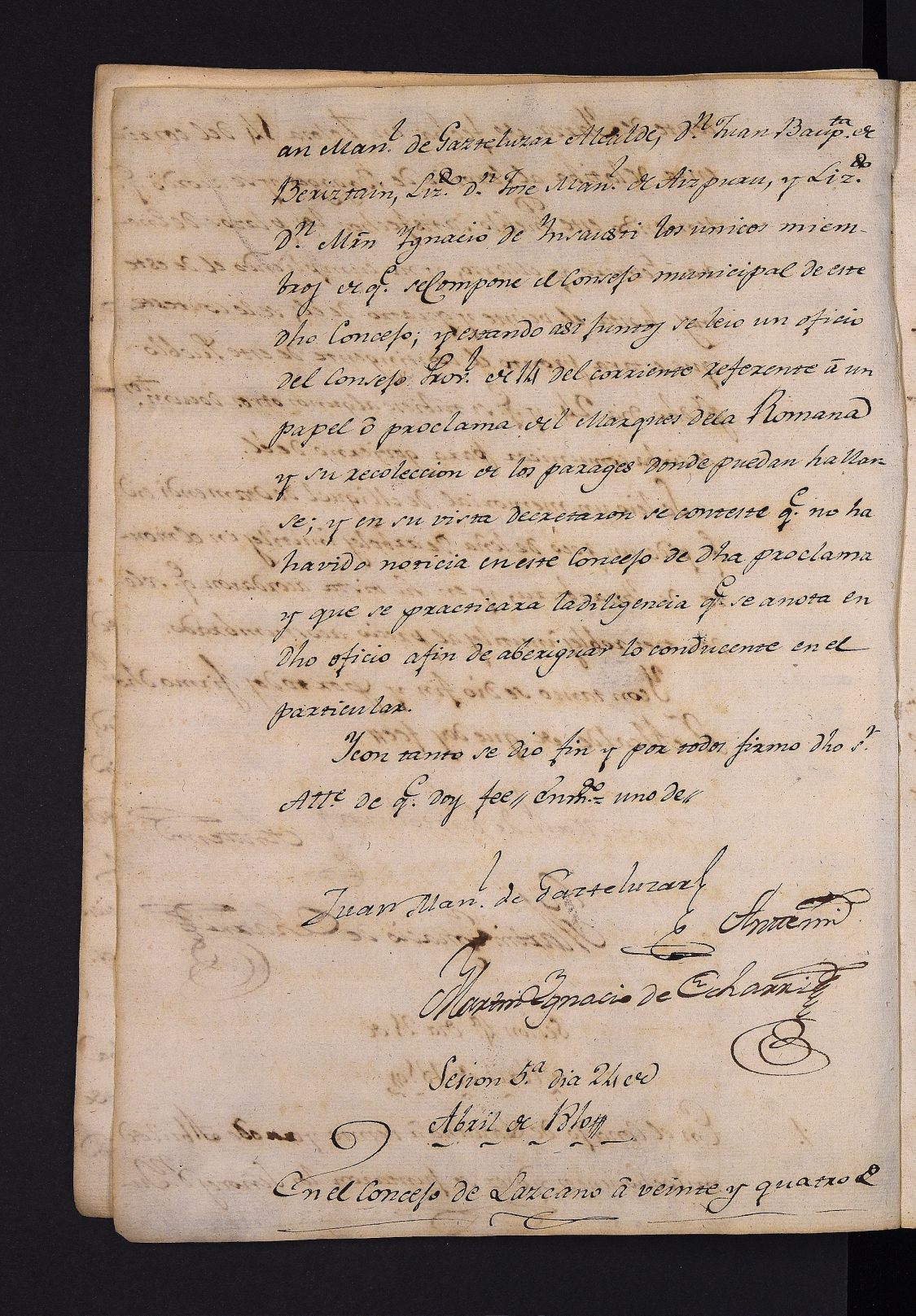Probintziako Kontseiluaren ofizioaren irakurketa, Romanako markesaren aldarrikapen baten inguruan.
