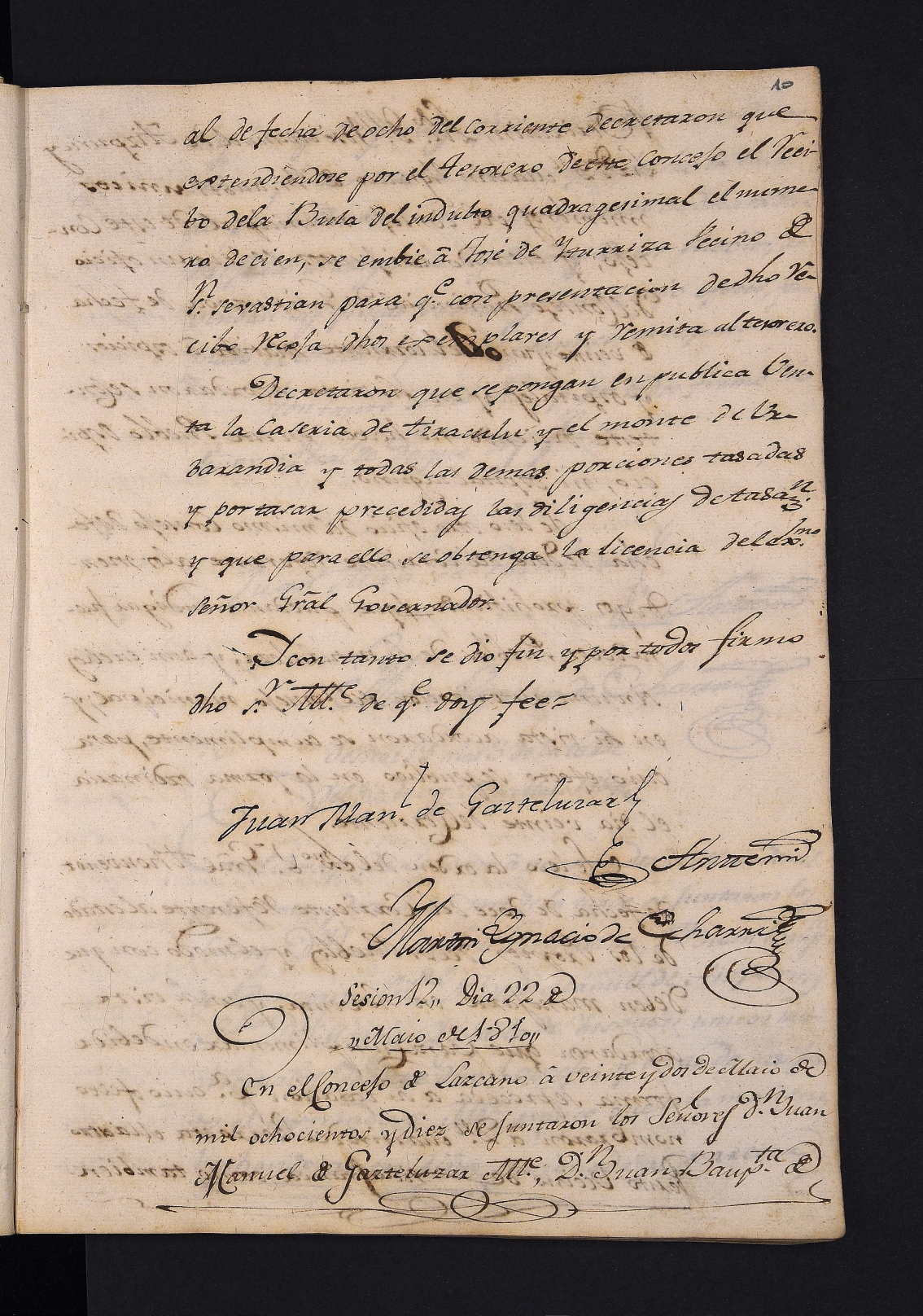 Ganadua zerrendatzeko arduradun Juan Francisco Aldanondo eta Juan Antonio de Arrese izendatzea. # Probintziako Kontseiluaren ofizioak, sortutako kontribuzioei buruzkoak. # Probintziako Kontseiluaren ofizioa garizumako indultu buldaren inguruan. # Salmenta publikoan jartzea Tirakulu baserria eta Urbaraundi mendia.