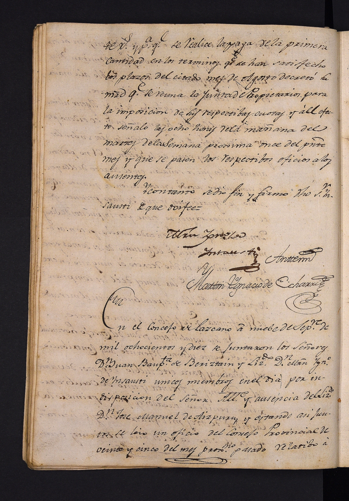 Probintziako Kontseiluaren ofizioaren irakurketa, udalerriari dagozkion saldutako lursailen zerrenda bidaltzeko eta kontribuzioen zenbatekoa entregatzeko eskatuz.