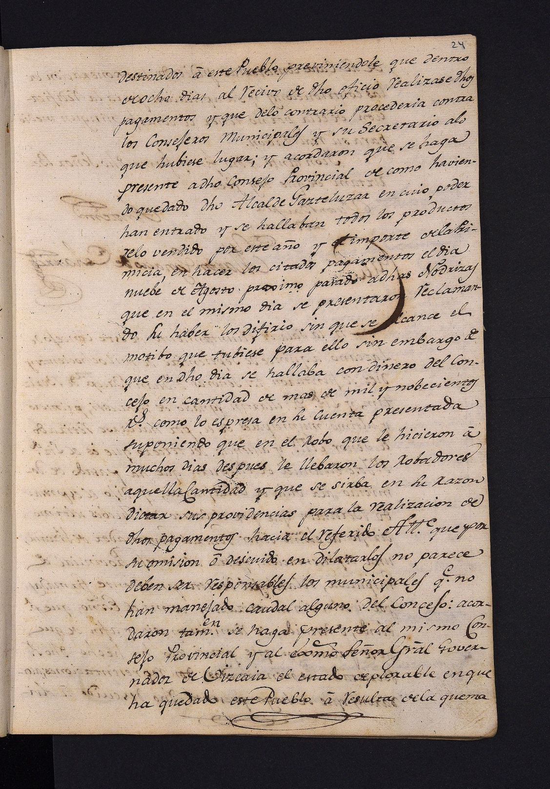 Probintziako Kontseiluaren jakinarazpena, Clara de Sasiain eta Maria Francisca de Arsuaga inudeek beren zerbitzuengatik jaso gabe dituzten ordainketak eskatuz. Udalbatzaren izenean, ordainketa ez dela egin argitzen da horretarako erabili behar zen dirua lapurtua izan zelako.