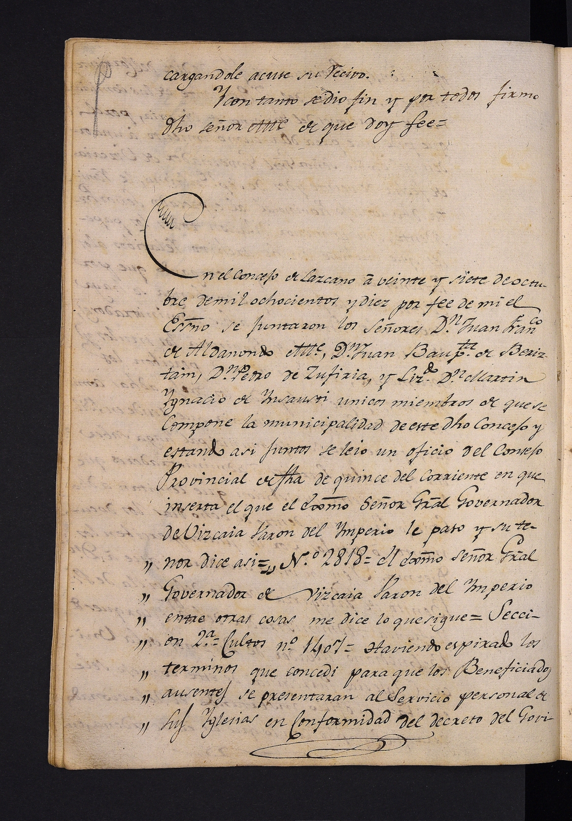 Probintziako Kontseiluaren ofizioaren irakurketa, Gobernadorearen ebazpen batekin, udalerriek ordezkapenerako egokiak iruditzen zaizkien elizgizonak proposa ditzaten. Lazkaok prestatutako zerrenda ematen da. # Probintzia Kontseiluaren ofizioa eskaleen inguruan. # Probintziako Kontseiluaren ofizioa, Gobernadoreak erabakitako diru-banaketari buruzkoa.