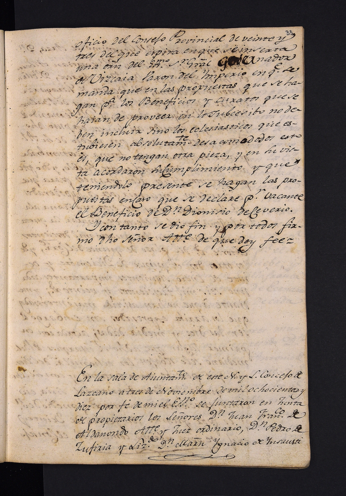 Zergetarako kuotak ezartzea. # Gobernadorearen adierazpena, Gipuzkoako lurralde jabetzaren egoeran patronatuengatik sekularrek jasotakoa sartu gabe dagoela adieraziz eta ekarpenak berrikusteko eskatuz. # Lazkaoko kontribuzioetan ezartzen diren kargei buruz Probintziako Kontseiluarekin hitz egitea adostea.