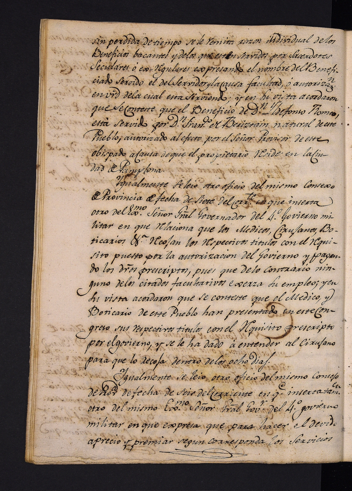 Probintziako Kontseiluaren ofizioaren irakurketa, Gobernadoreari onuradun eta apaiz sekularren zerrenda bidaltzeko. # Mediku, zirujau eta botikarien tituluak ikuskatzeari buruzko Gobernadorearen ofizioa. # Probintziako Kontseiluaren ofizioa, gaizkileen jazarpenean herriek eta partikularrek egindako zerbitzuak saritzeko.