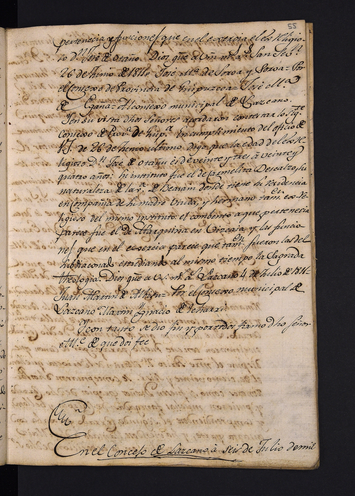 Probintzia Kontseiluaren ofizioaren irakurketa, Jose de Otaño erlijiosoari buruzko datuak eskatuz. Bidaliko diren datuak adosten dira.