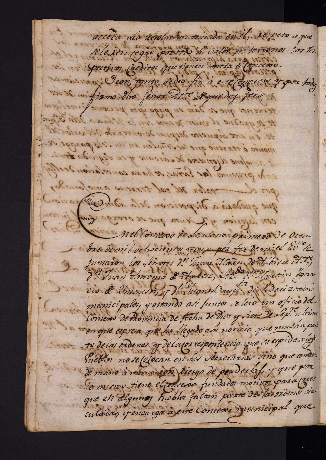 Probintzia Kontseiluaren ofizioaren irakurketa, Kontseiluak bidalitako gutuneria eta agindu guztiak berrikusteko eta zerbait falta bazaie, kopiak eskatzeko aginduz.