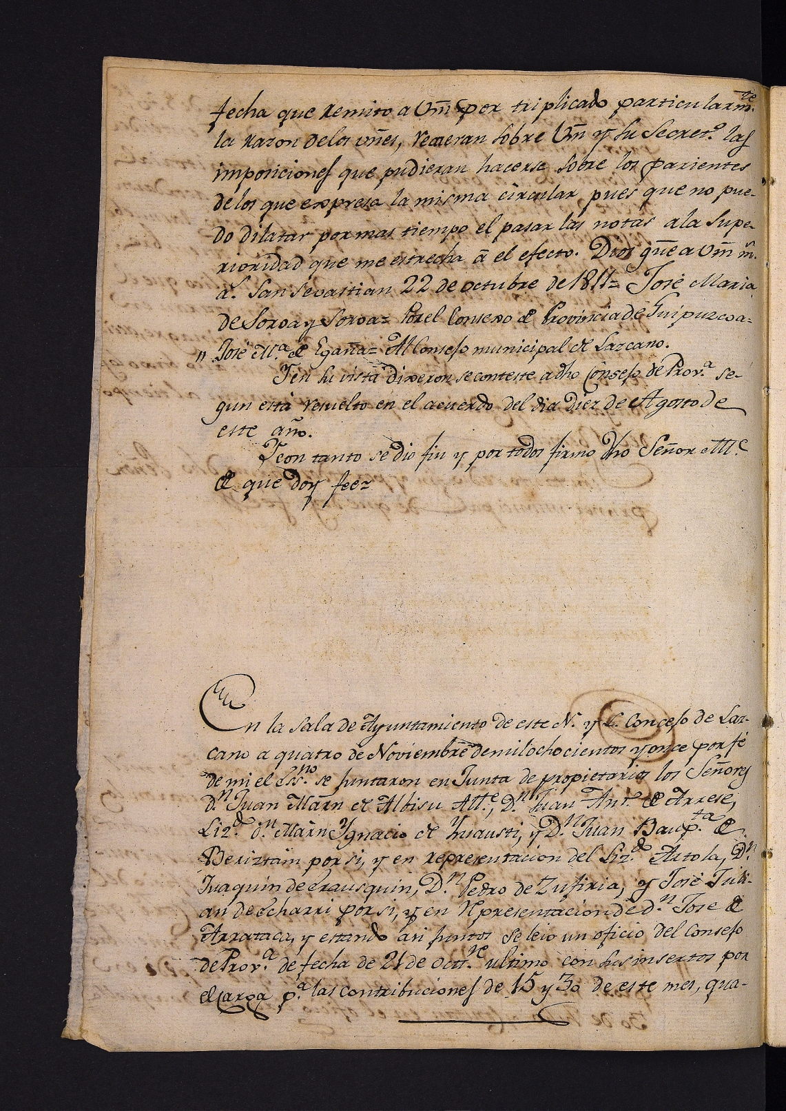 Probintzia Kontseiluaren ofizioaren irakurketa, aurretik bidalitako hainbat ofiziotan egindako eskaerei buruzkoa.