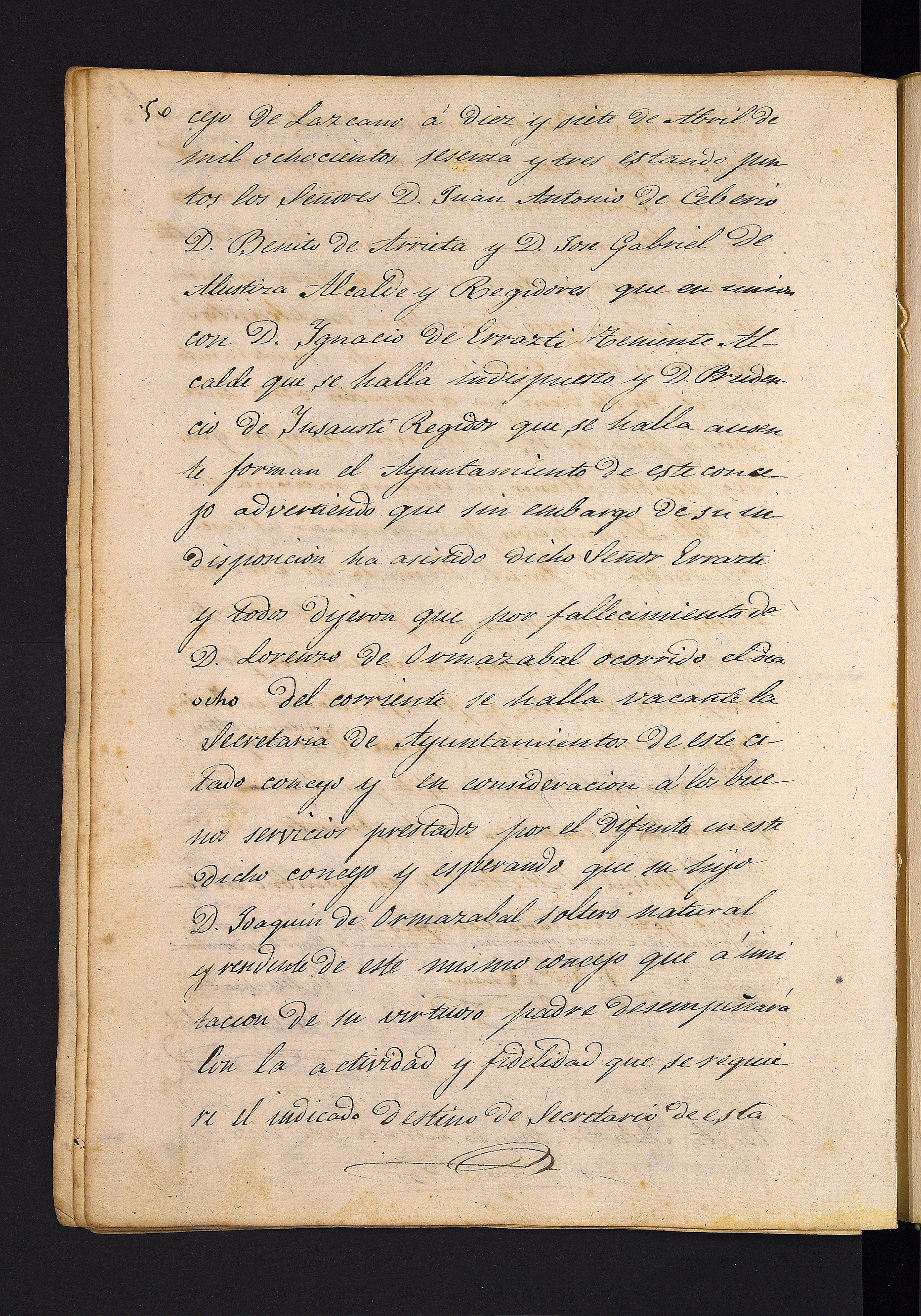 Lorenzo de Ormazabal hil ondoren, udaleko idazkari lanpostua hutsik gelditu denez, Joaquin de Ormazabal bere semea idazkari kargurako izendatzea erabakitzen da.
