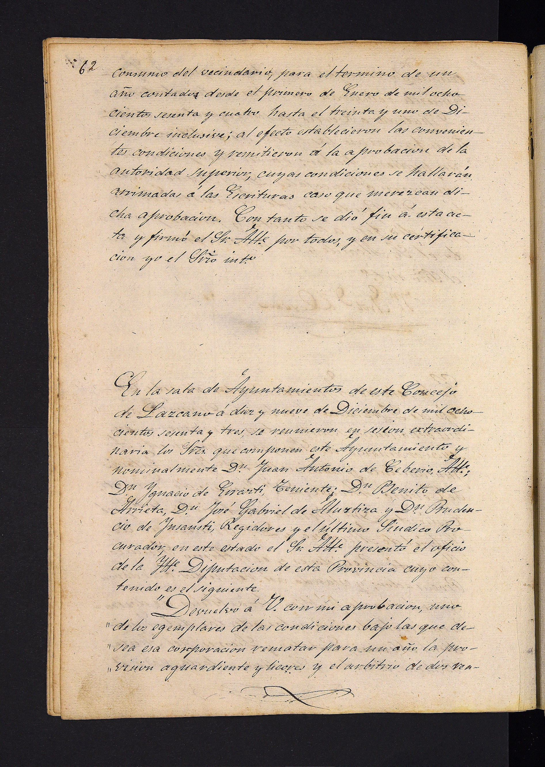 Aldundiaren ofizioaren irakurketa, pattar, likore eta ardo hornidurak errematatzeko baldintzen onespenarekin.