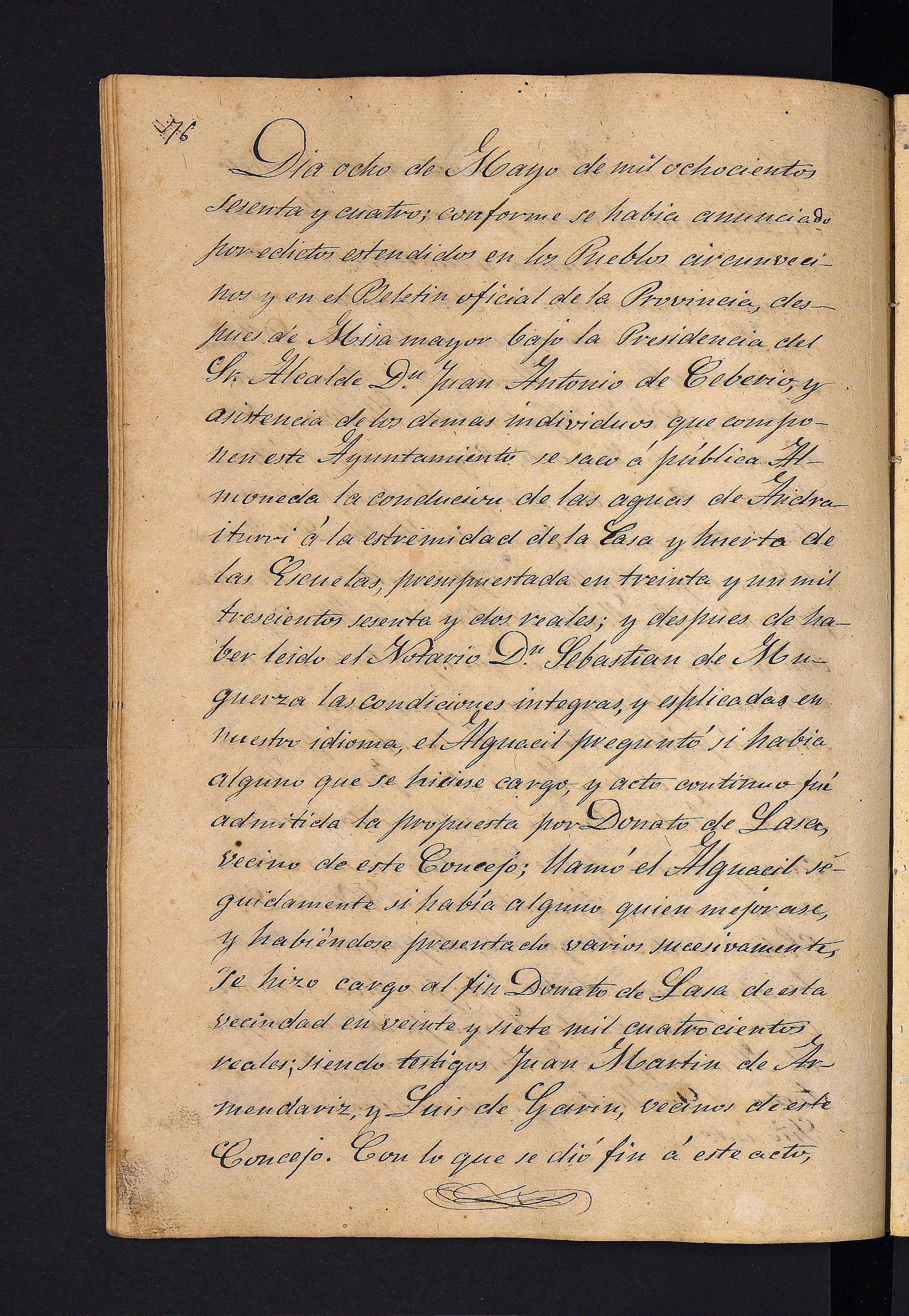 Andraiturriko iturritik eskoletako baratzeraino ura eramateko lanen enkantea egiten da. Baldintzak irakurri ondoren, Donato de Lasa aurkezten da.