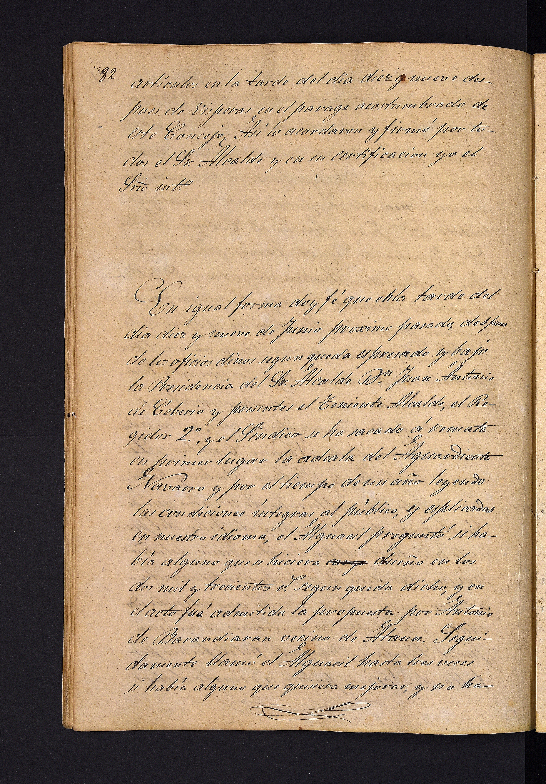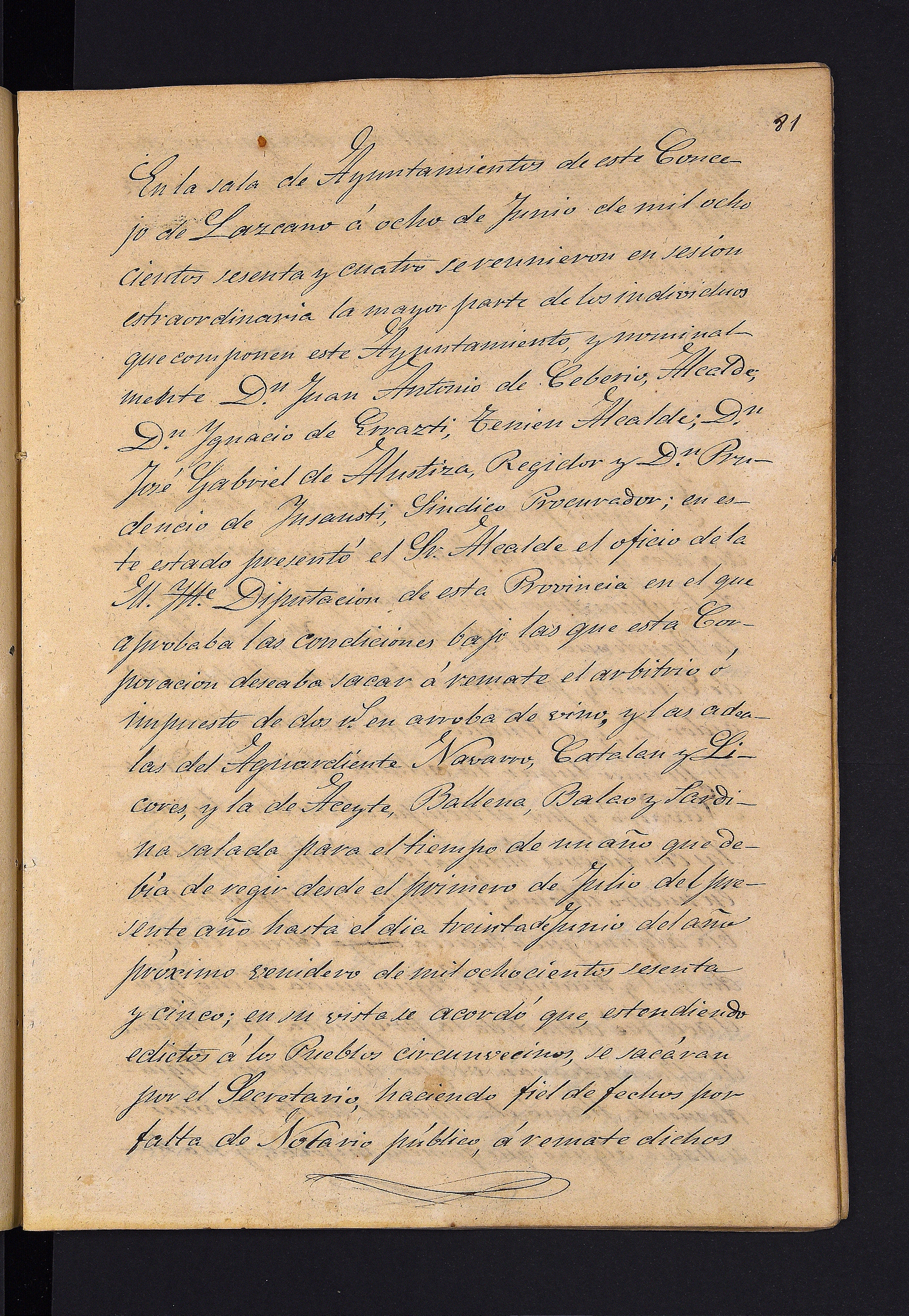 Aldundiaren ofizioaren irakurketa, ardoaren, pattarraren, likoreen eta olioaren gaineko zergaren errematerako baldintzak onesten dituena.