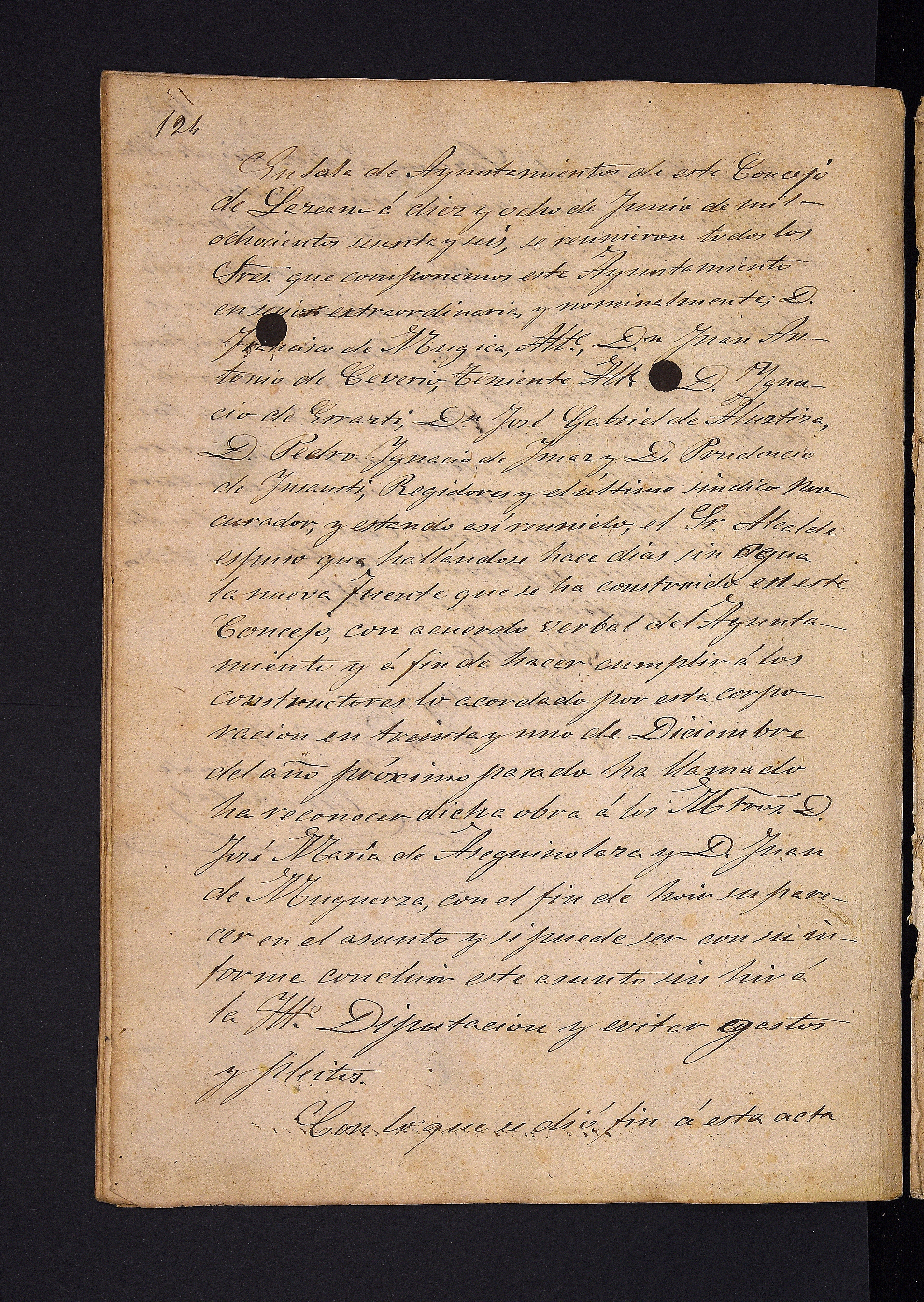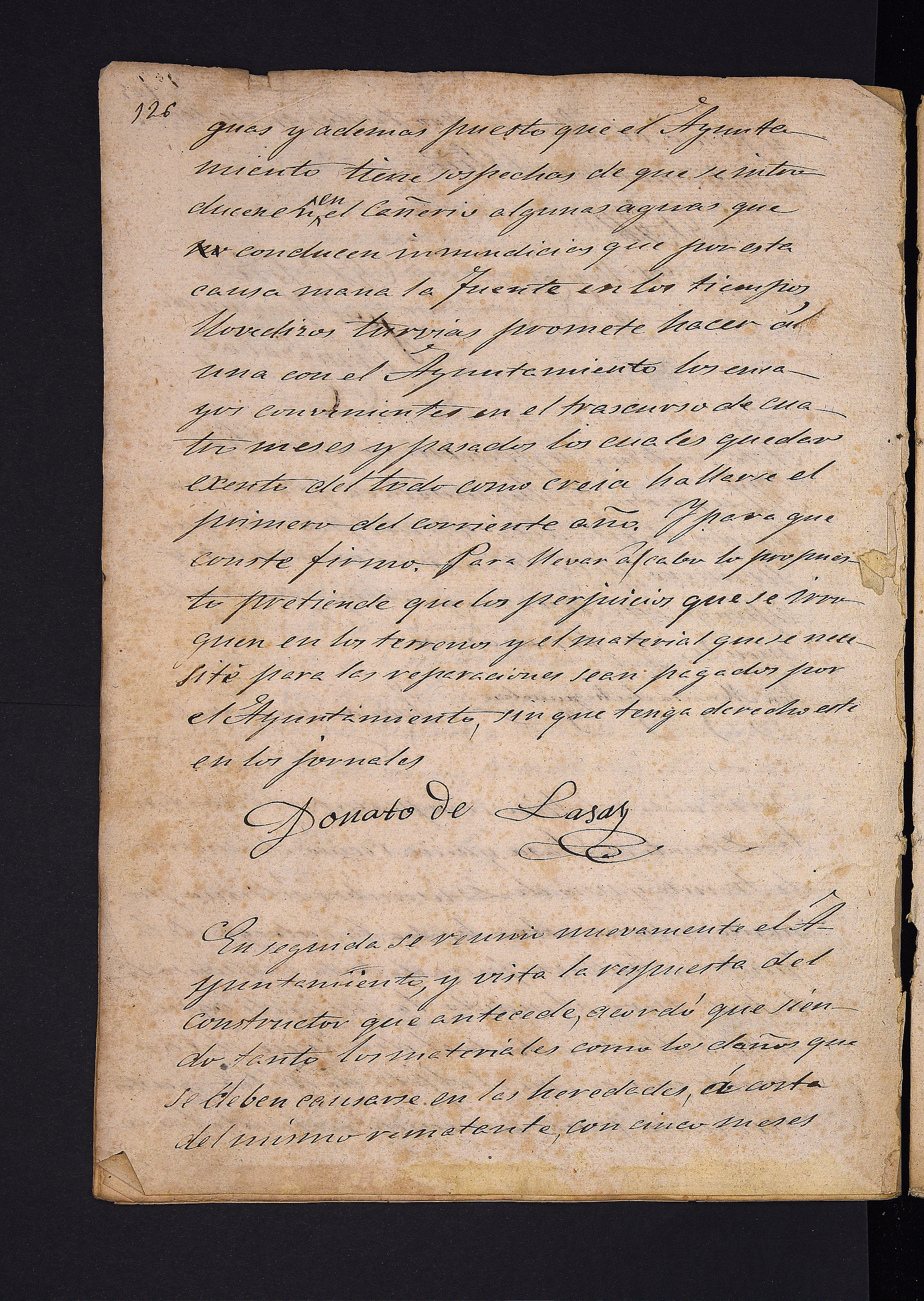 Eraikitako iturri berria urik gabe dagoenez, egoera aztertzeko eskatzen zaie Jose Maria de Aseguinolazari eta Juan de Muguerzari. # Jose Maria de Aseguinolaza eta Juan de Muguerzak ohartarazten dute lehenik errematatzaileak eman behar dituela azalpenak. # Donato de Lasa errematatzaileak azaltzen du iturria entregatu ondoren, erantzukizunetik kanpo dagoela. Hala ere, ur korrontea itzultzeko eta udalari arazoa konpontzen laguntzeko konpromisoa hartzen du, baina obra udalak ordaintzea eskatuz. # Udalak ez du obra ordaintzea onartzen eta arazoa Aldundiaren esku uztea erabakitzen da.