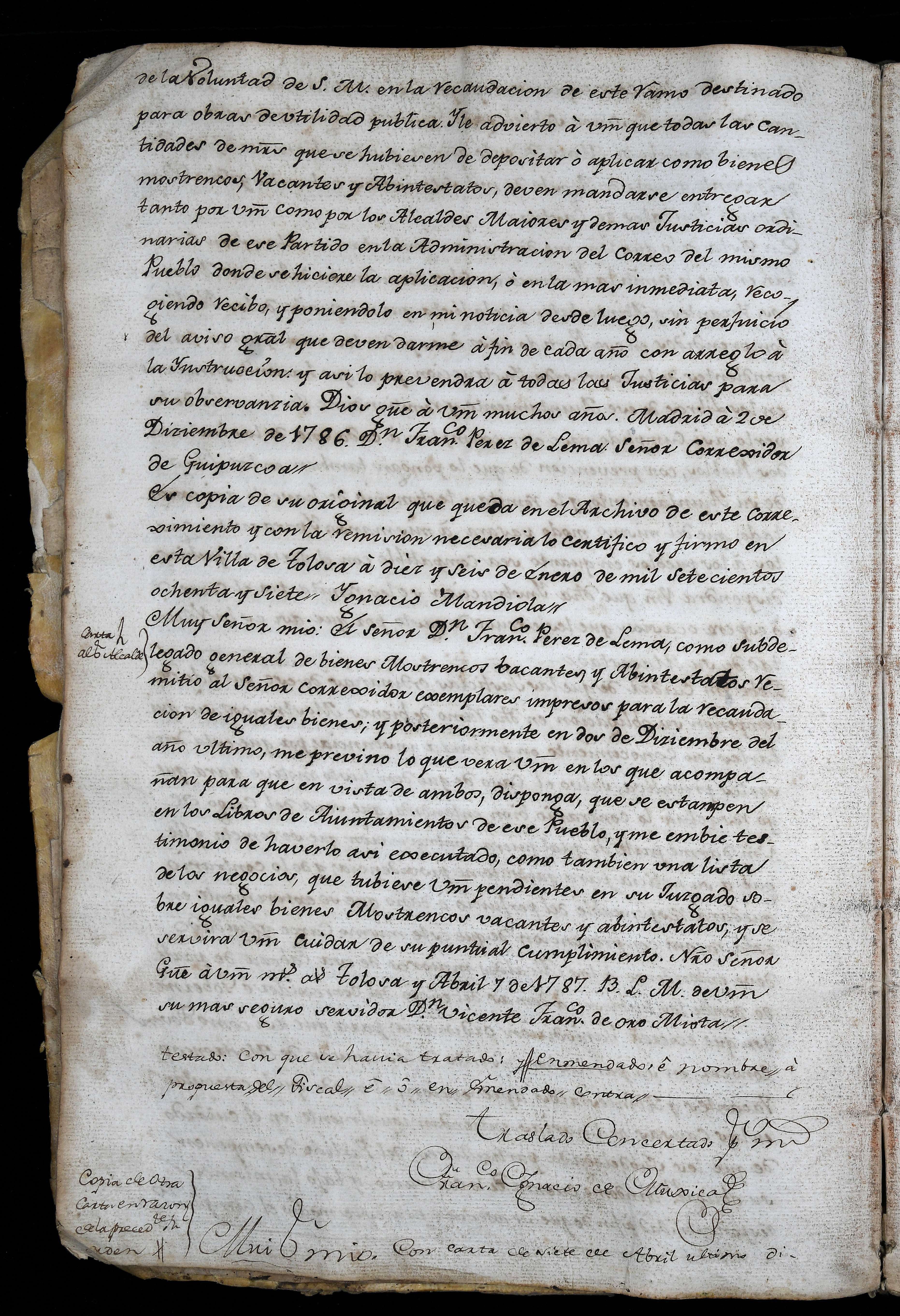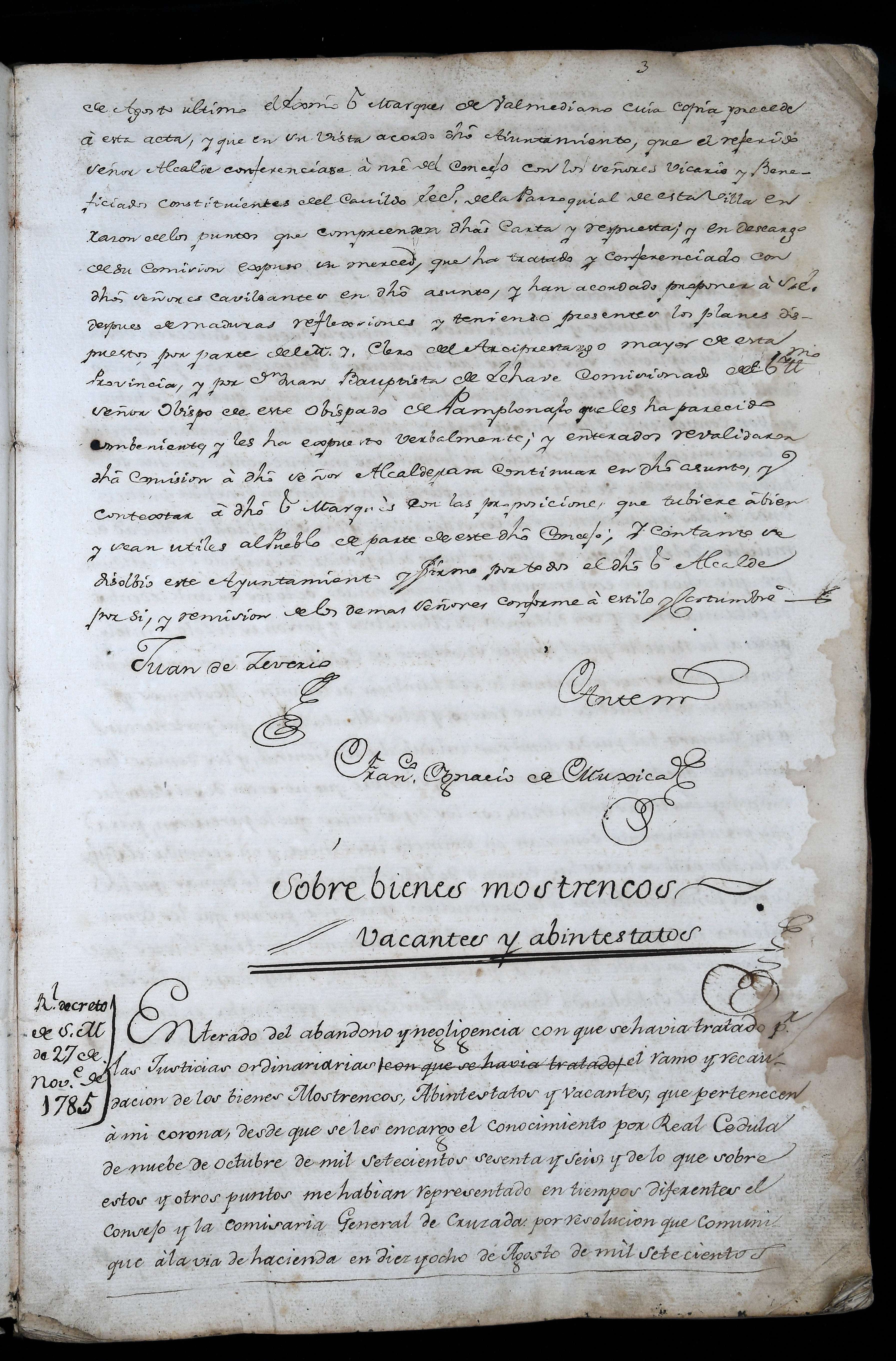 1785eko azaroaren 27ko Errege Dekretuaren testua, ondasun mostrenko, jabegabe eta abintestatoei buruzkoa.
