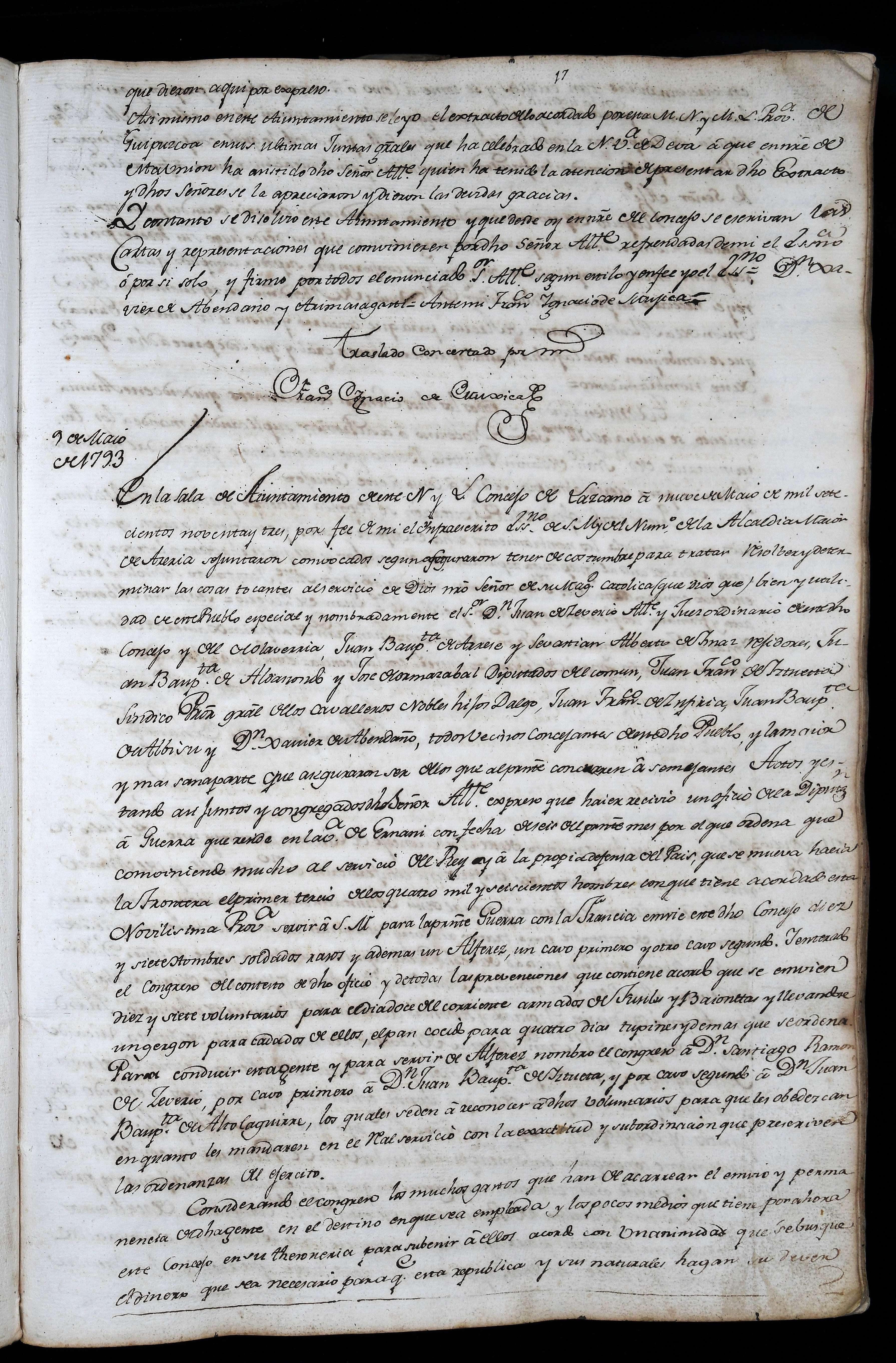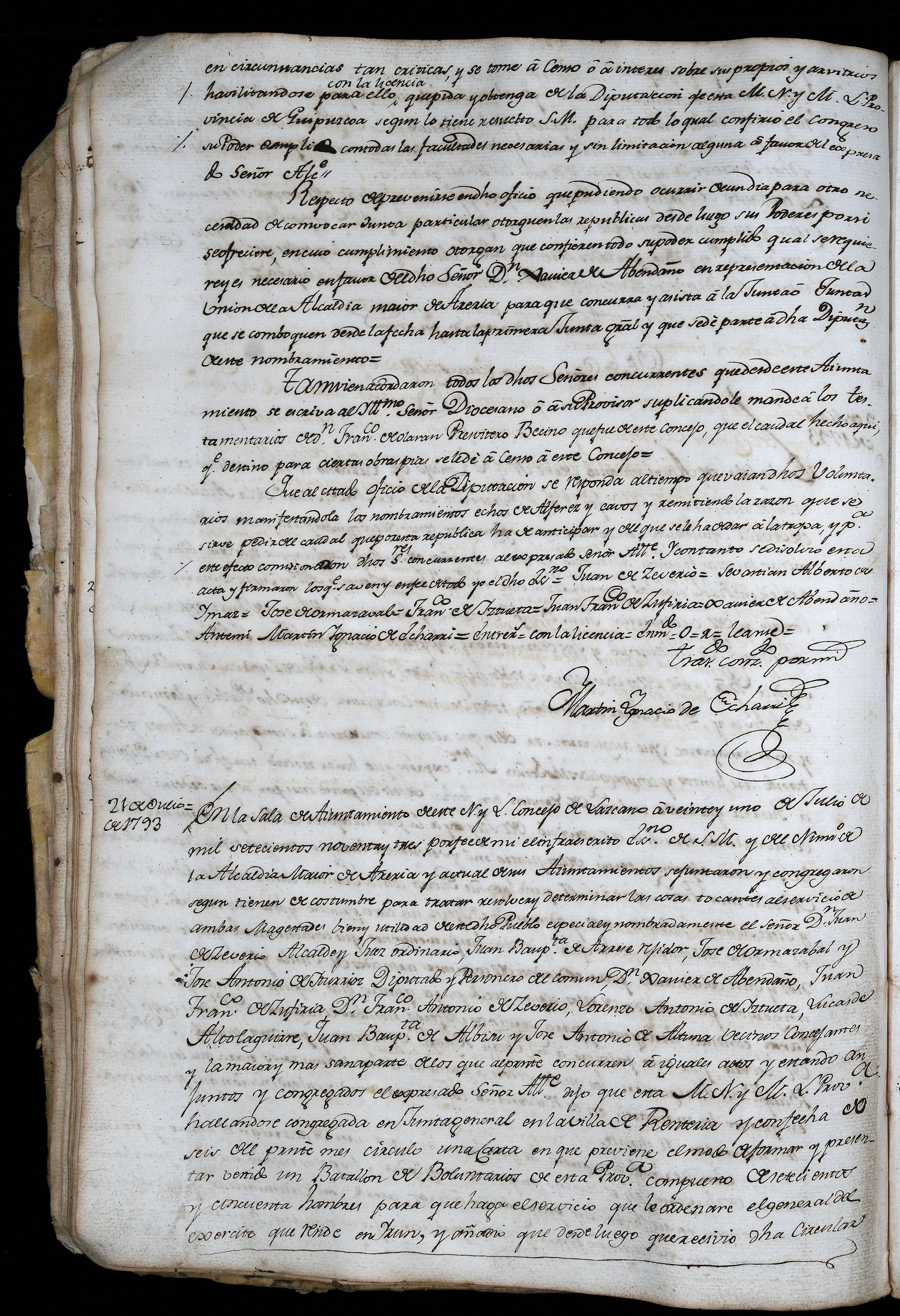 Gerrako Diputazioaren ofizioaren irakurketa, Frantziarekin Gerran probintziak adostuta duen lehen tertzioa mugara mugitu dadin eskatuz. Udalerriko 17 boluntario bidaltzea erabakitzen da eta gastu hori ordaintzeko behar den dirua bilatzea adosten da. # Javier de Abendaño izendatzea Aldundiaren batzarretarako Areriako batasunaren ordezkari gisa. # Francisco de Olaranen testamentugileari idaztea, obra gupidatsuak egiteko udal honentzat ezarritako dirua ordaintzeko eskatuz.