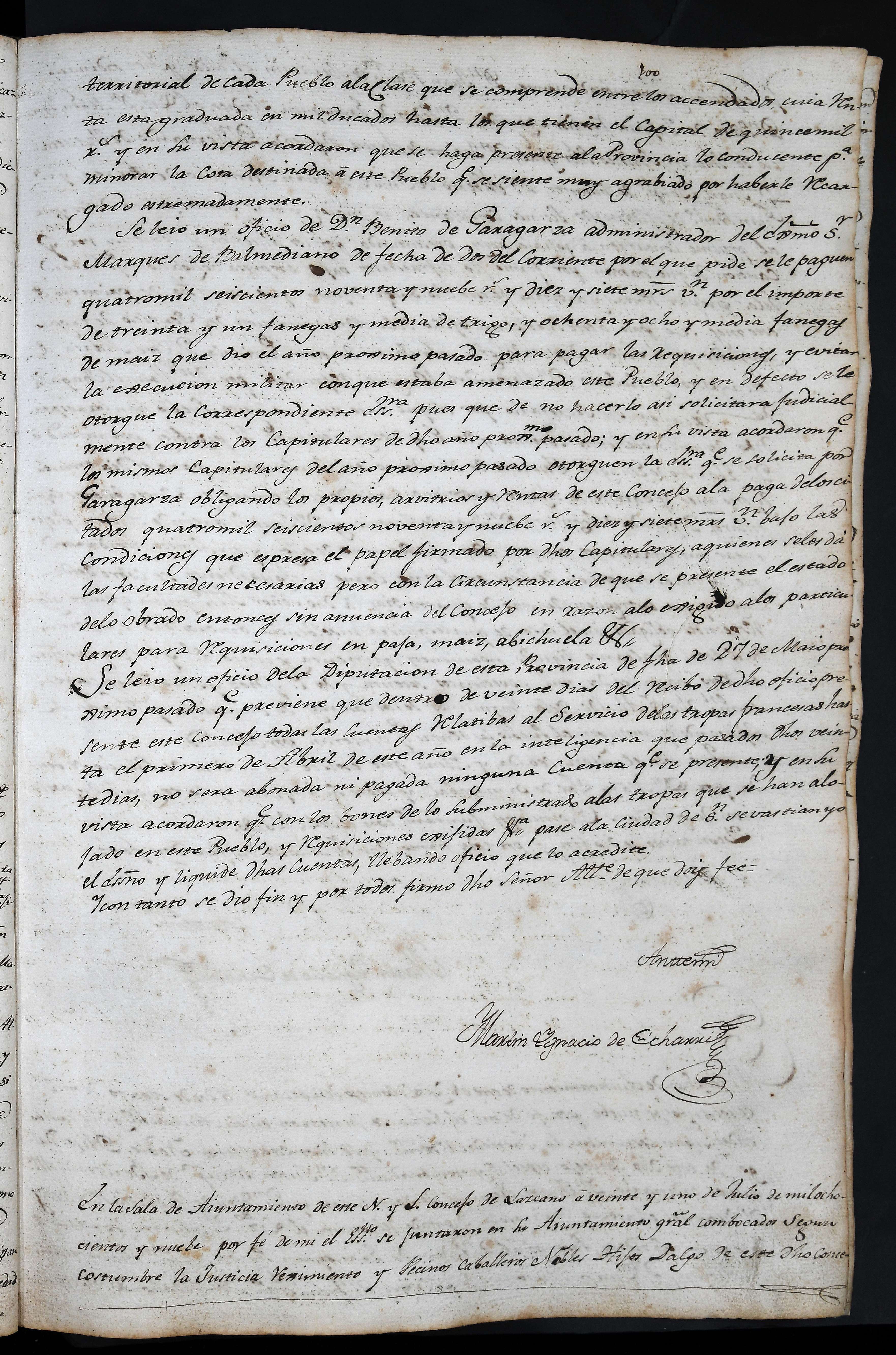 Tropen zerbitzuaren ofizioa, udalerri bakoitzaren ekarpenari buruzkoa.